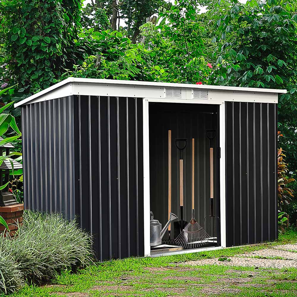 Keep your garden equipment secure with Outsunny Corrugated Shed 9 x 4ft. Made from galvanised steel for enduring reliability and stability - it comes with a double door for easy access and two ventilation windows. The garden metal sheds provide enough room in your garden for your gardening equipment, tools and outdoor equipment. Finished with a top coat for weather protection - this small shed is strong and durable for long lasting use in your garden.