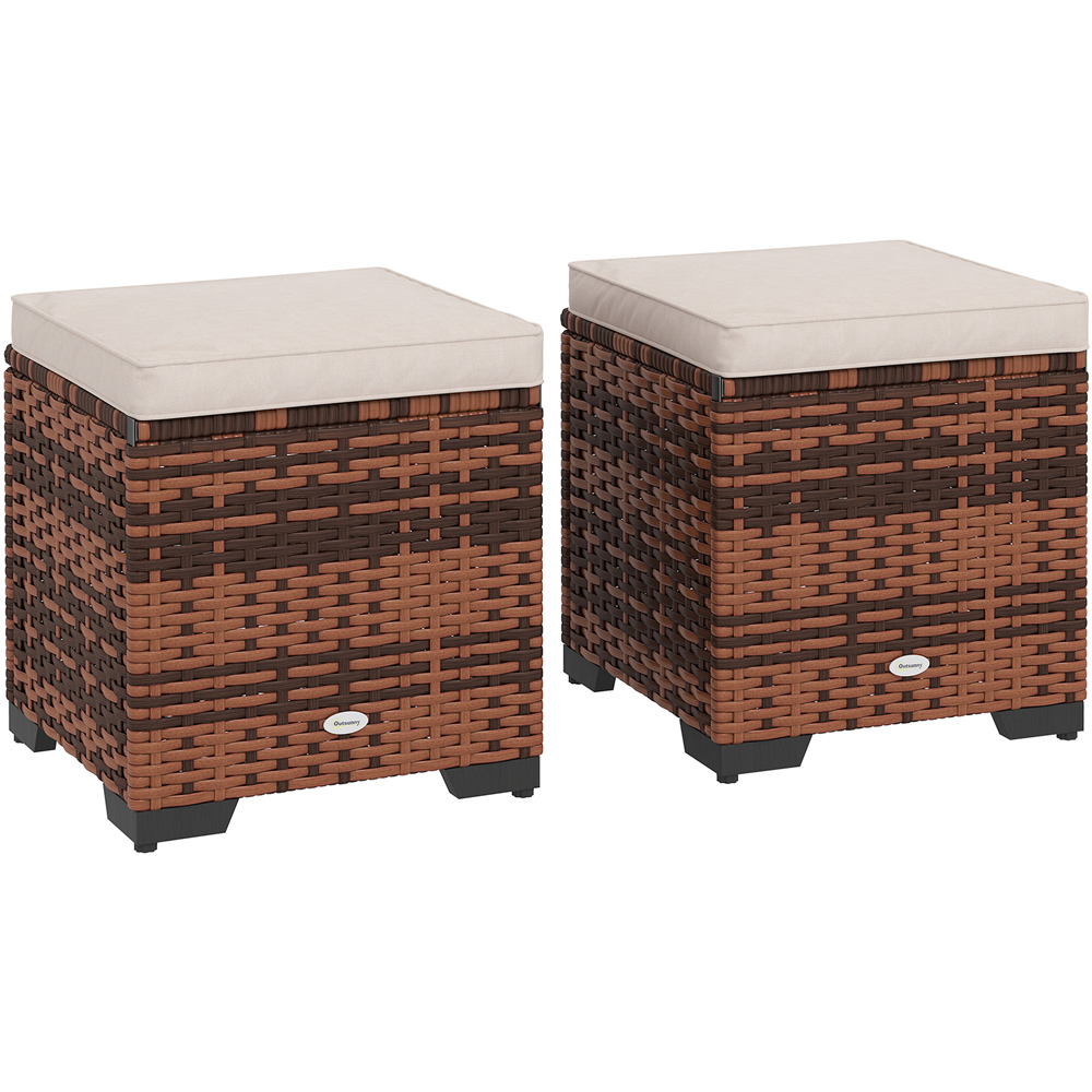 Discover the charm of Outsunny's rattan garden stool, blending style and functionality. Its lift-off lids reveal lots of storage for all your bits and bobs, from books to gardening tools. Enjoy upgraded comfort with thick, cushy seats that easily zip off for cleaning. This versatile piece serves wonderfully as a small footstool or extra seating, crafted to endure the elements with a robust steel frame.