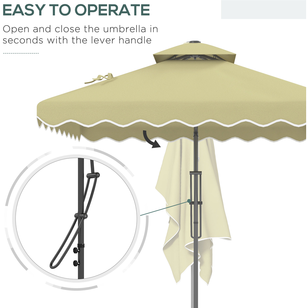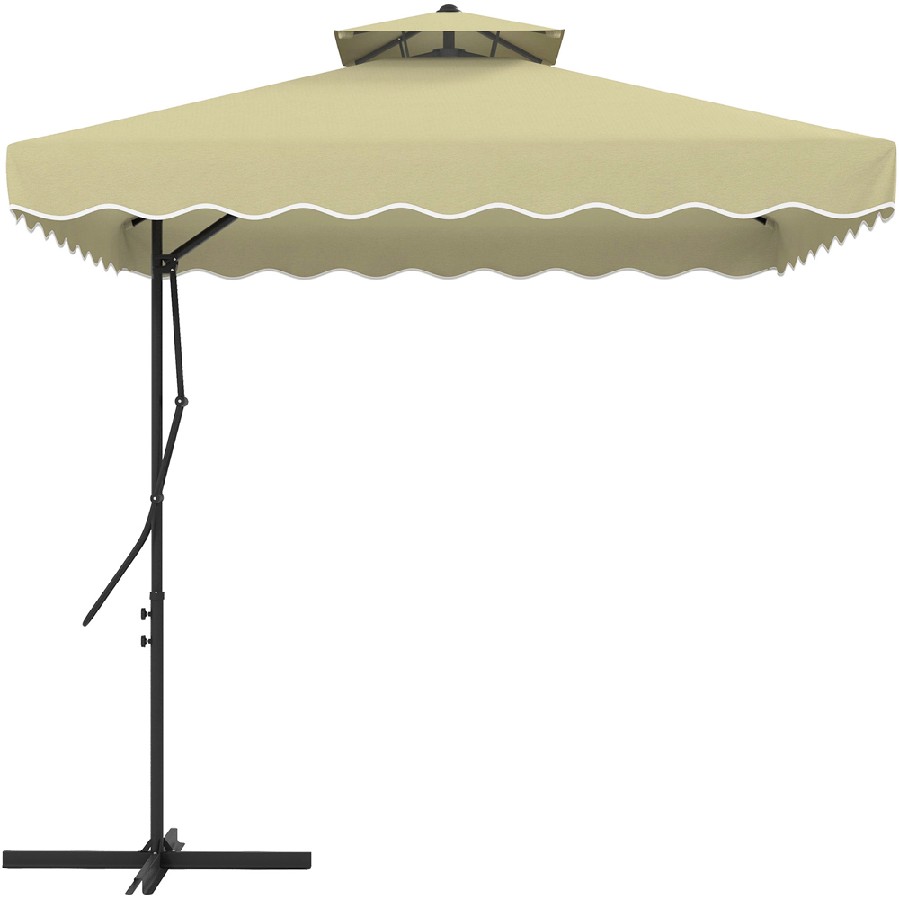 Outsunny Beige Square Double Tier Cantilever Parasol with Ruffles 2.5m