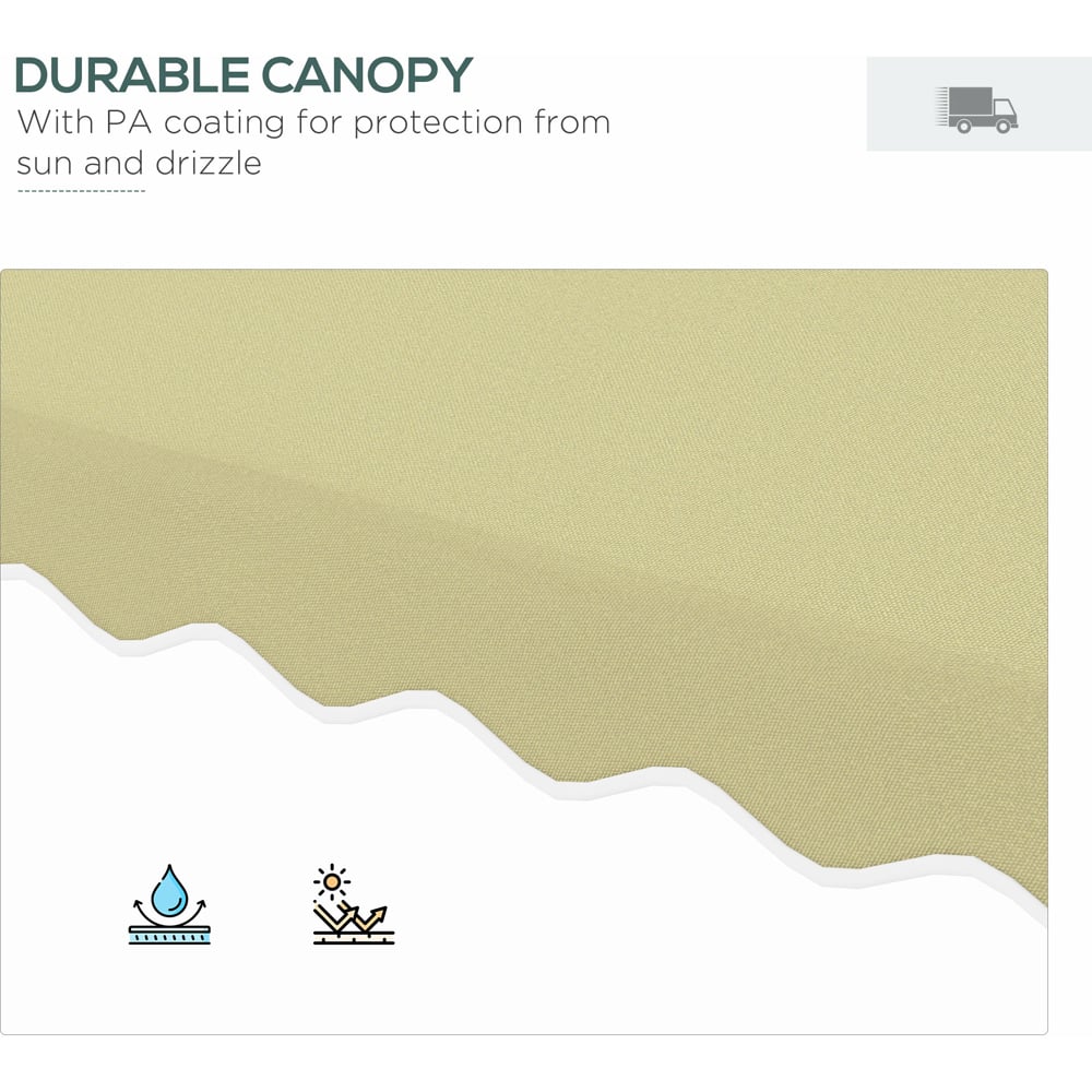 Ensure you keep yourself protected while enjoying the sun, thanks to this Outsunny Beige Square Double Top Cantilever Parasol with Ruffles 2.5m. This parasol has a metal structure that offers a strong core. It has an offset design that hangs over and doesn't get in the way. The cantilever parasol features a large fabric canopy with a waved border. The canopy is protected by a PA coating. It also features a handle to open and close the canopy quickly. Looking for a way to keep your parasol secure and protected and enjoy some shade? Check out our selection of parasol bases, designed to keep your parasol in place while you relax and parasol cover to keep them protected. Dimensions: H265 x W243cm.