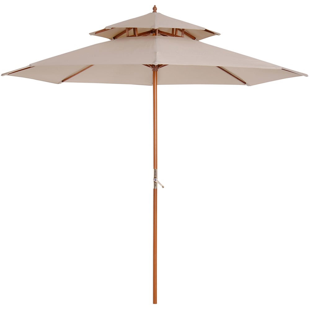 Make a soothing and practical addition to your outdoor area with the Outsunny Beige Umbrella Parasol. This 2.65m parasol with a two-tier design provides better air circulation, minimizing wind build-up underneath. It is crafted using 180 gsm polyester fabric for durability and longevity. It features a solid mainframe and a sturdy pole with eight connected ribs for stable support. It is the ideal blend of beauty and functionality that protects you while you relax under the sun. Looking for a way to keep your parasol secure and protected and enjoy some shade? Check out our selection of parasol bases, designed to keep your parasol in place while you relax and parasol cover to keep them protected.