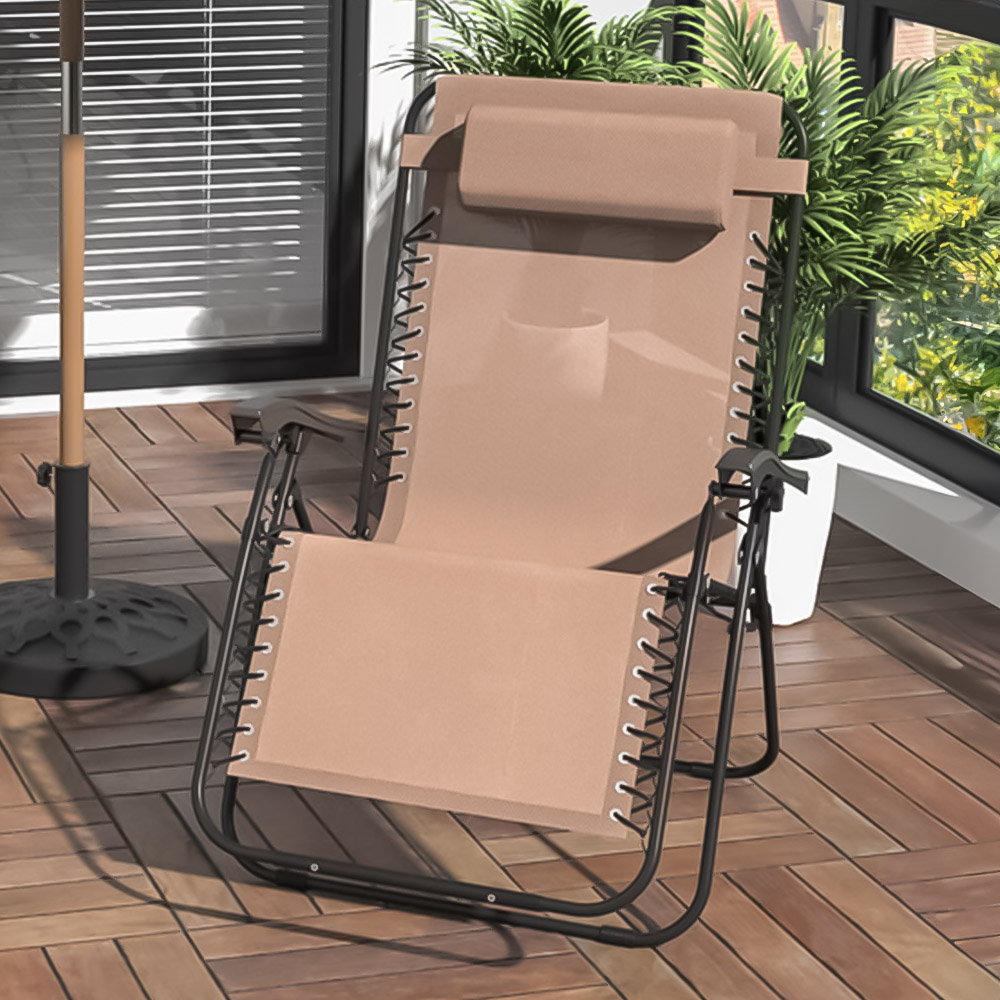 Outsunny Beige Zero Gravity Folding Recliner Chair