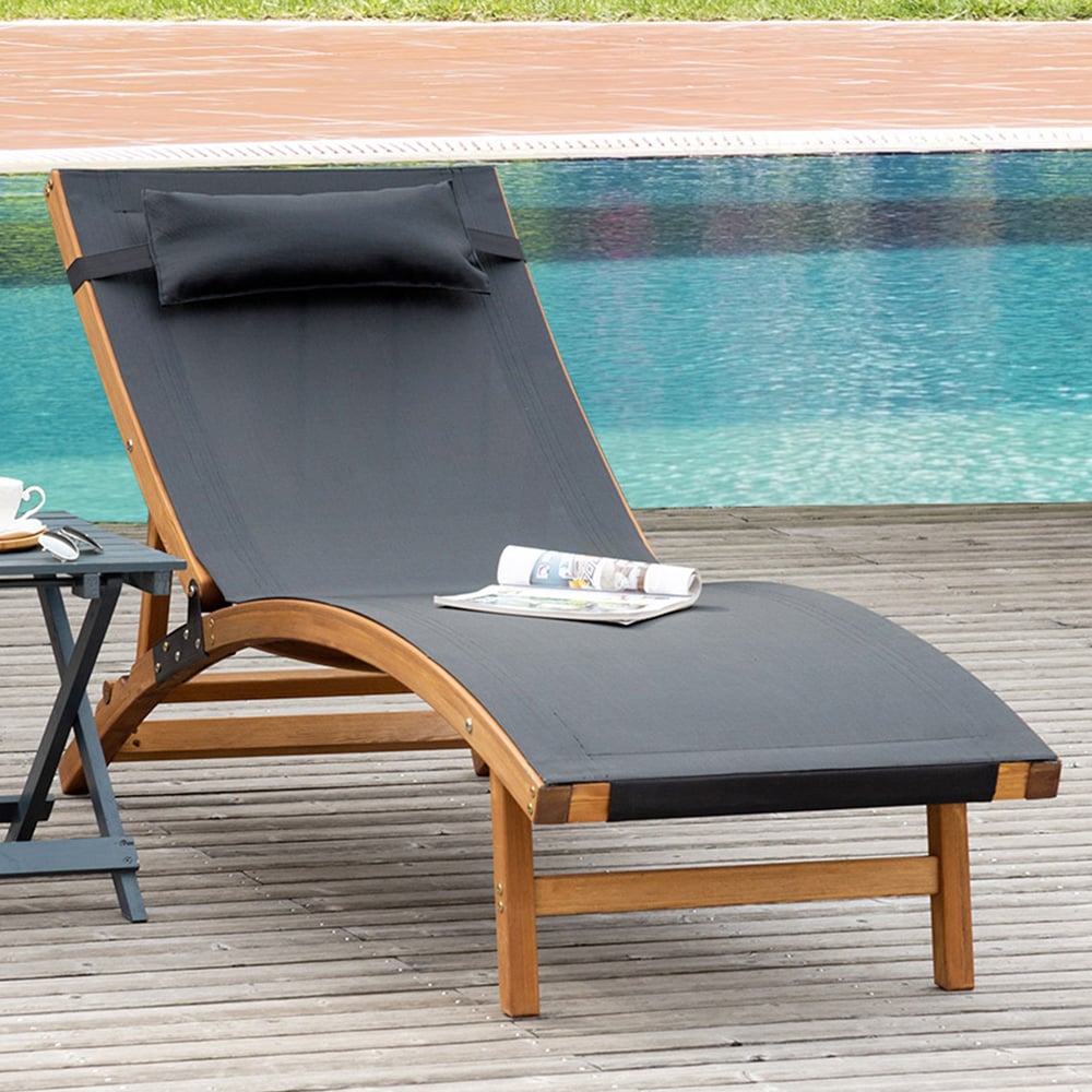 Outsunny Black 3 Level Adjustable Sun Lounger with Pillow