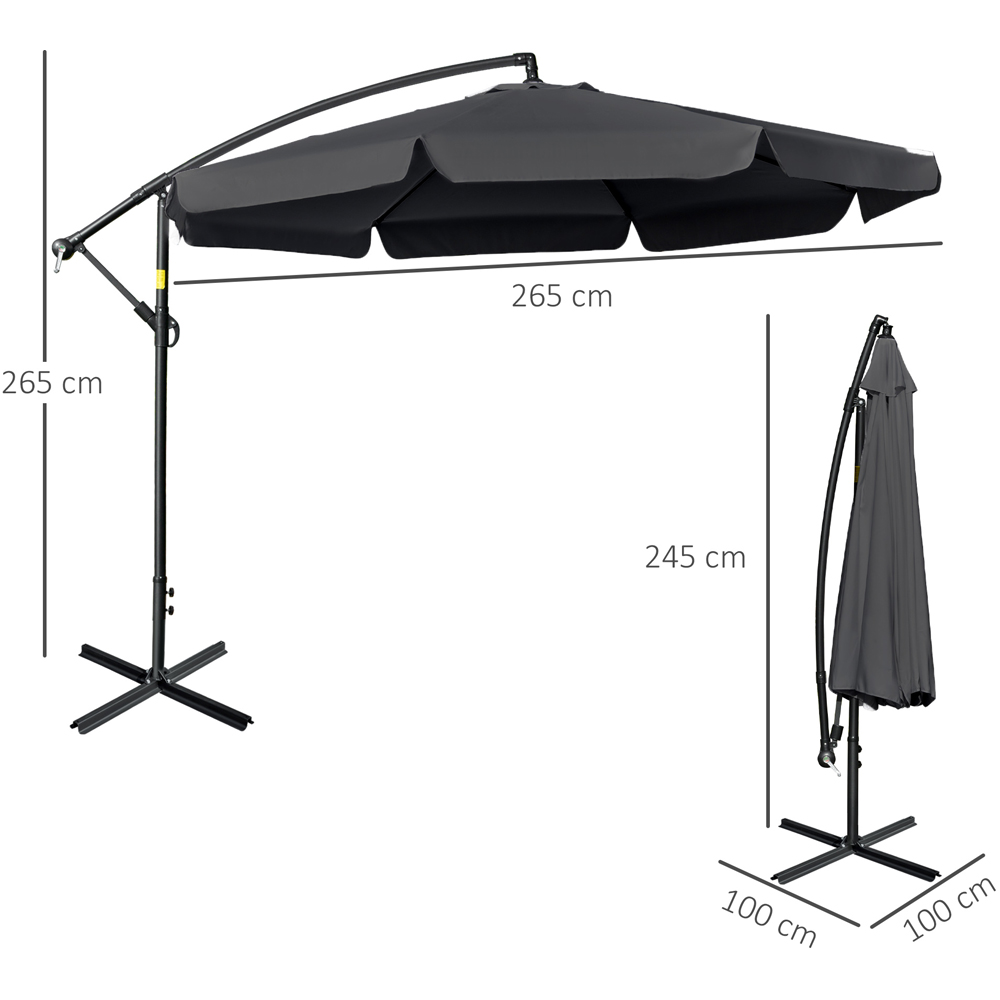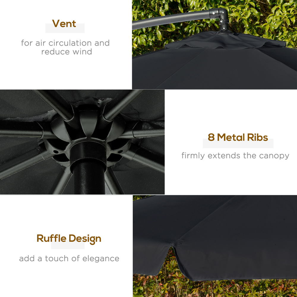 Outsunny Black Crank Handle Cantilever Banana Parasol with Cross Base 2.7m