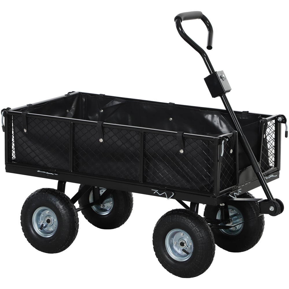 Whatever the gardening, camping or festival load, this Outsunny heavy duty trolley will see you through. The 114L capacity offers plenty of room, with the removable waterproof bag providing protection against outer weather. Made from steel, this is a strong piece, with removable sides to allow easy loading and unloading. Complete with pneumatic rubber tyres for smooth movement.