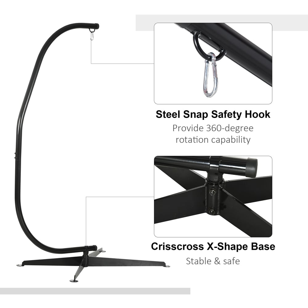 Hang your swing chair inside or outside with the Outsunny Black Hanging Swing Chair Stand. A structure made from powder-coated steel, it will hold up to 120kg effortlessly and is durable for extended use. Formed into a 'C' shape for optimal balance, it can swivel fully and comes with a spring buckle to attach the chair. It's finished with a large 'X' base for keeping the structure balanced. Moves smoothly in a full circle design so you sway gently for a more relaxing experience. Perfect for those getaway spots in the garden and home. Protect your garden furniture with our durable and waterproof covers. Explore our wide range of heavy-duty Garden Furniture covers to find the perfect fit for your needs.