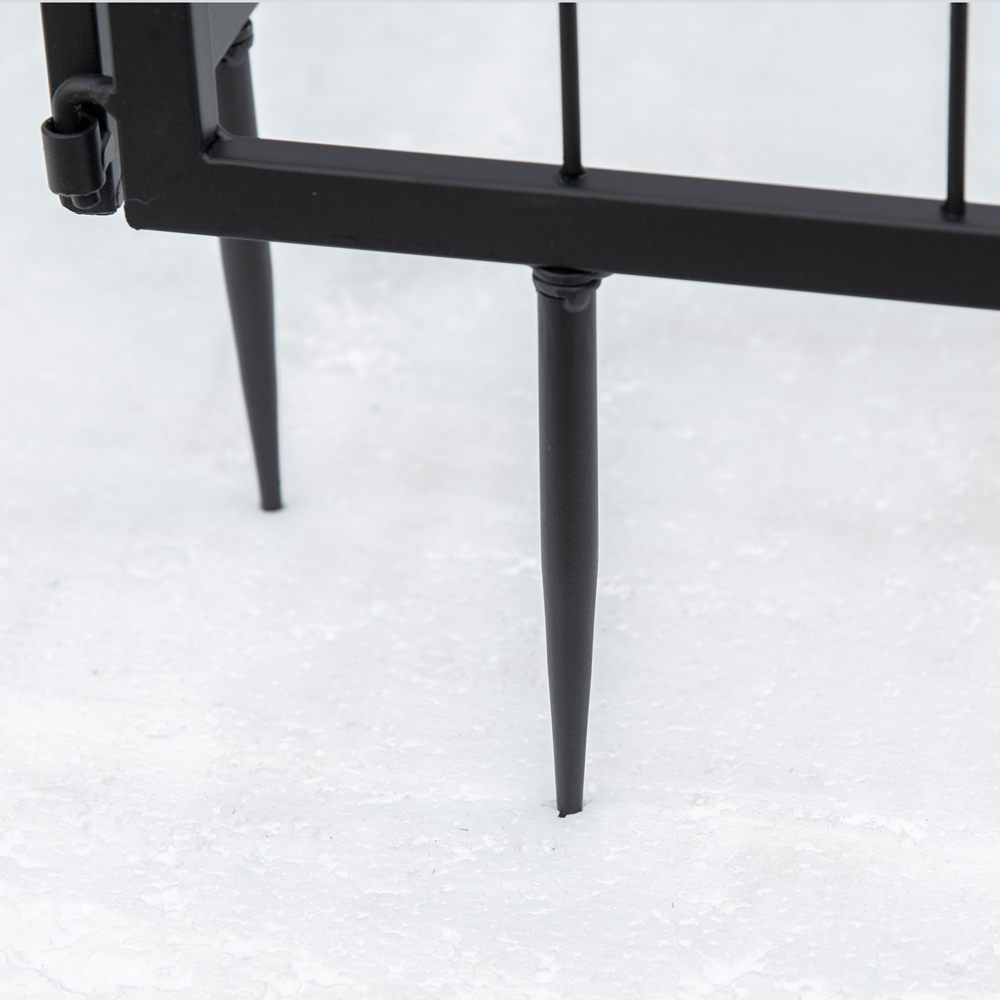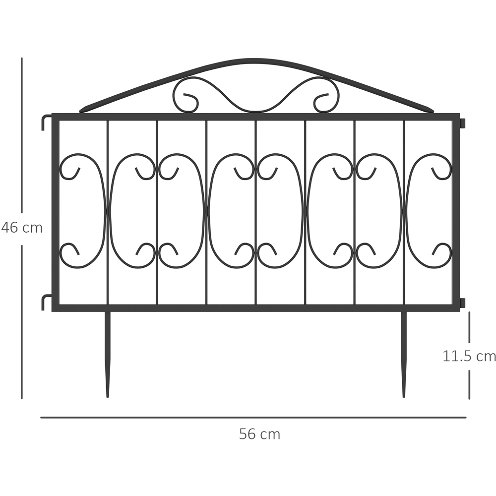 Enhance the beauty and functionality of your garden with the Black Decorative Garden Fence Panel by Outsunny. This outdoor fence includes ground stakes for easy setup by inserting them into the soil or grass. The elegant curved line and stylish pattern bring charm to your fencing barriers. Use it as a garden fence, space partition, or patio decoration to protect your flowers and yard. The interlocking mechanism allows each panel to easily connect to another, giving you the flexibility to combine them in various ways. Dimensions: 1.5 x 1.8ft.