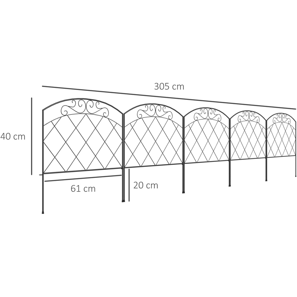 Outsunny Black Outdoor Picket Fence Panels with Swirls 61 x 300cm