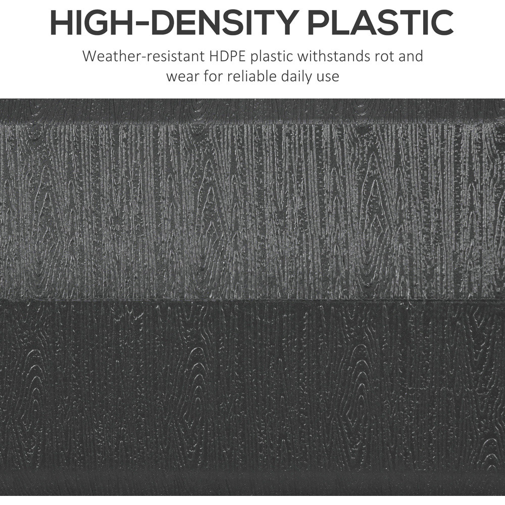 Keep your umbrella steady with the Outsunny Black Wood Effect Parasol Base. This square umbrella base stand weighs 40kg with sand and 30kg with water and offers a classy touch to your outdoor living area while also performing the important task of holding your umbrella in place. This durable parasol base features a HDPE plastic shell with a sturdy steel pole and two tightening screws to keep the umbrella in place. It is recommended for parasols with a 3.5m maximum height and 32mm, 38mm or 48mm pole diameter.