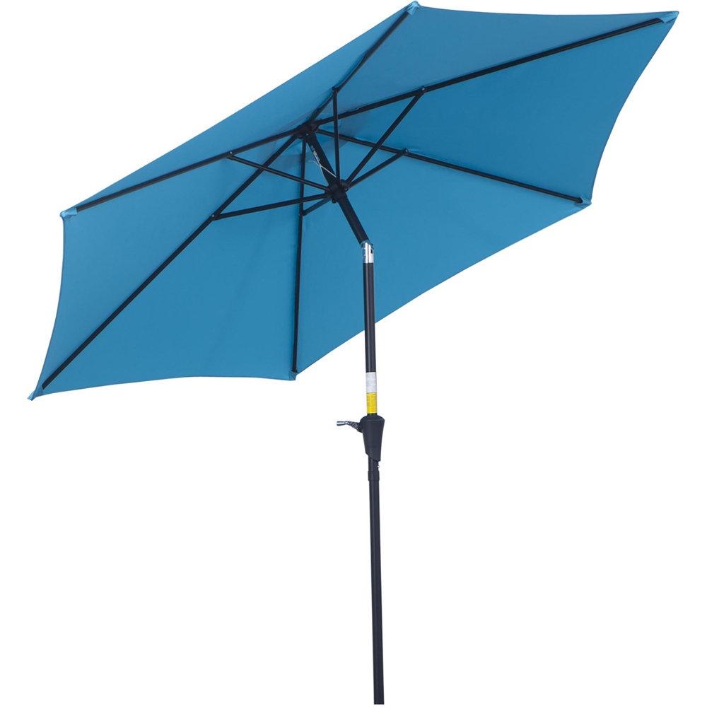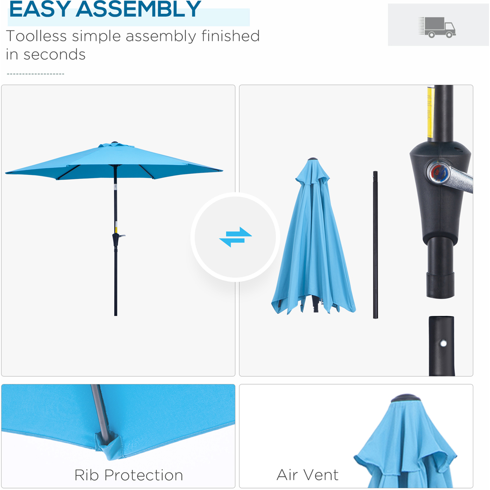 Outsunny Blue Solar LED Crank and Tilt Parasol 2.7m