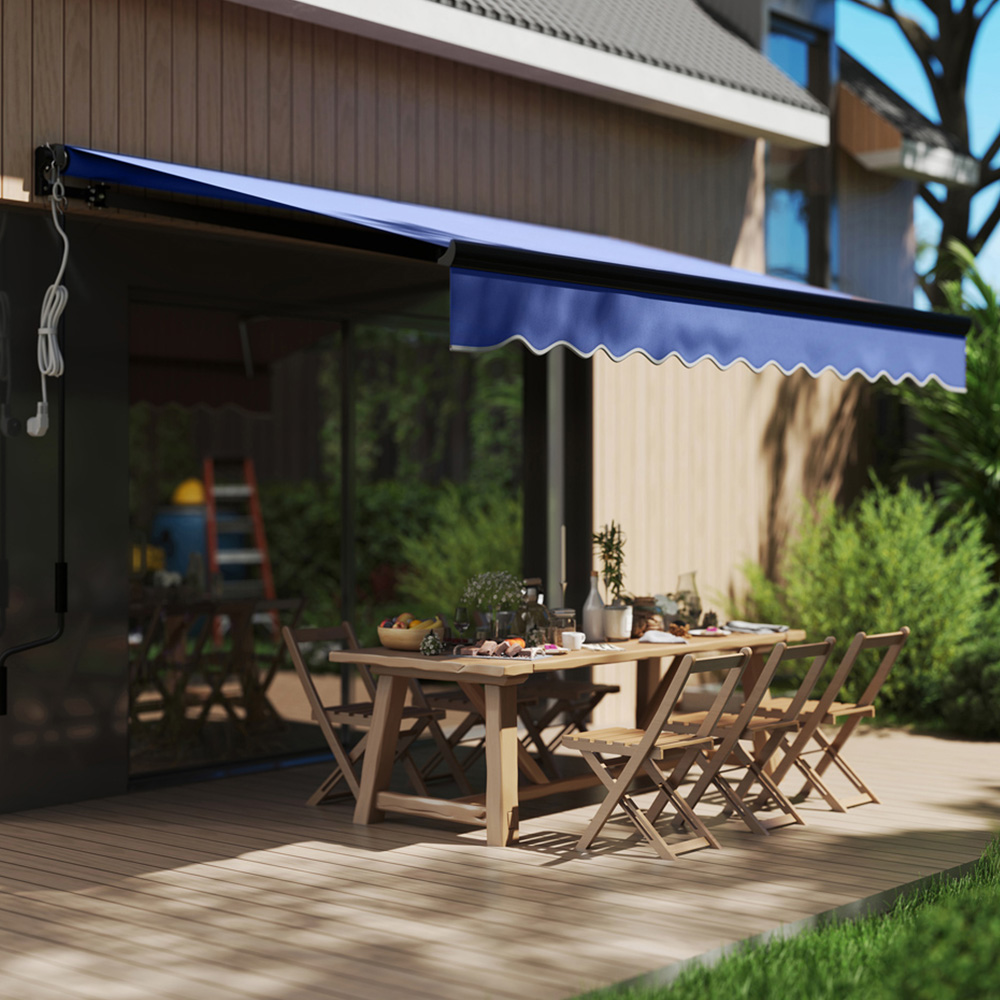 Outsunny Blue LED Electric Retractable Awning with Remote 3 x 2.5m