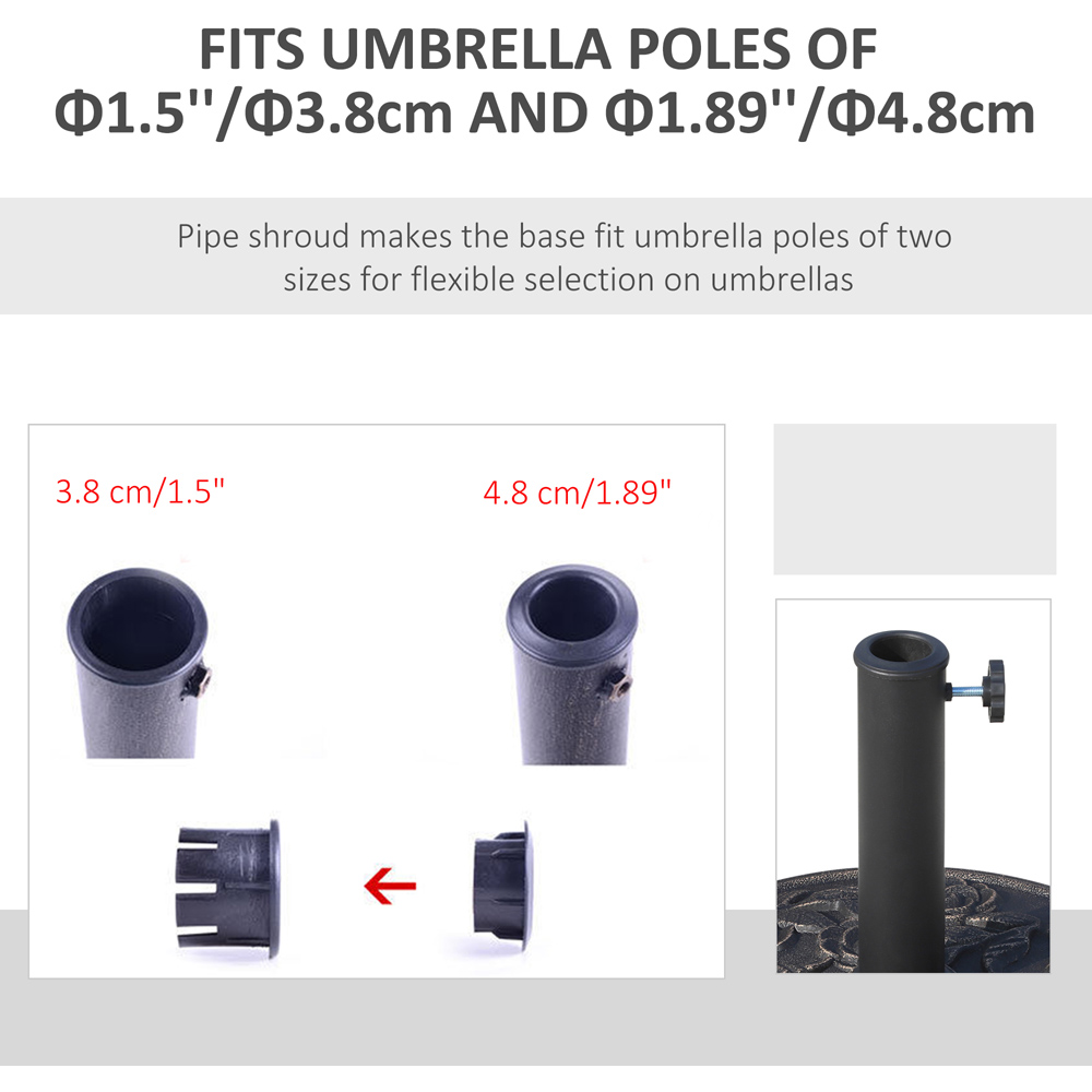 Enjoy the outdoor lifestyle with an attractive antique bronze tone parasol stand outside from Outsunny. It is engraved with a beautiful pattern that will go great in your garden or in your patio area. Just combine your umbrella with a table and chairs to create a relaxing oasis. The outdoor umbrella base holds your umbrella securely and evenly in place, so the umbrella can provide much-needed shade. Enjoy your days under an umbrella with this beautiful patio umbrella holder.