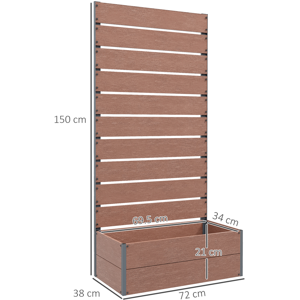 Expand your gardening possibilities with the Outsunny Brown Raised Garden Bed Planter Box with Trellis. This planter features an aluminium frame fitted with durable wood-plastic boards for a strong structure. Compact yet efficient, it creates a healthy growing environment for your flowers and plants and is suitable for outdoor use.