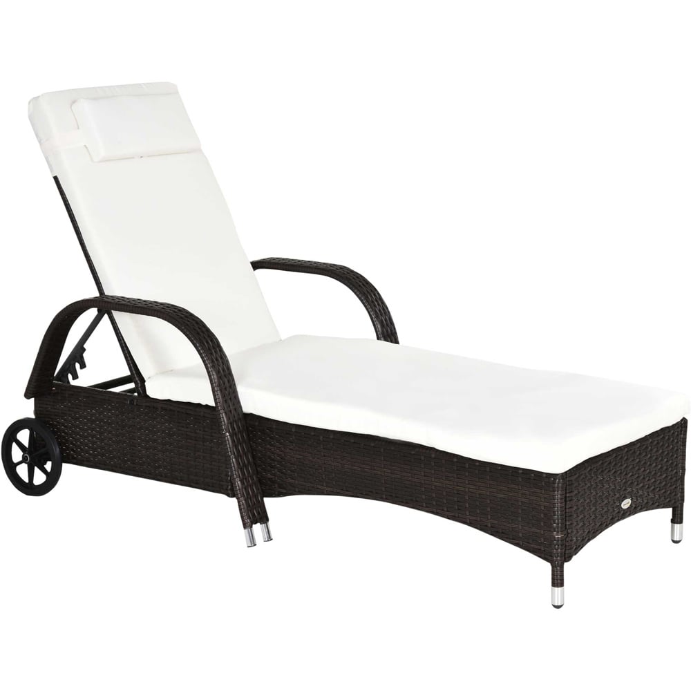 Soak up the sun with the Outsunny Brown Rattan Sun Lounger. It has been crafted from weather-resistant PE wicker with a strong steel frame and a sturdy base. This lounger includes a thick foam cushion seat with a removable headrest for utmost comfort. It also features two wheels for easy movement with a backrest that can be adjusted at five different levels to suit your preferences. Protect your garden furniture with our durable and waterproof covers. Explore our wide range of heavy-duty Garden Furniture covers to find the perfect fit for your needs.
