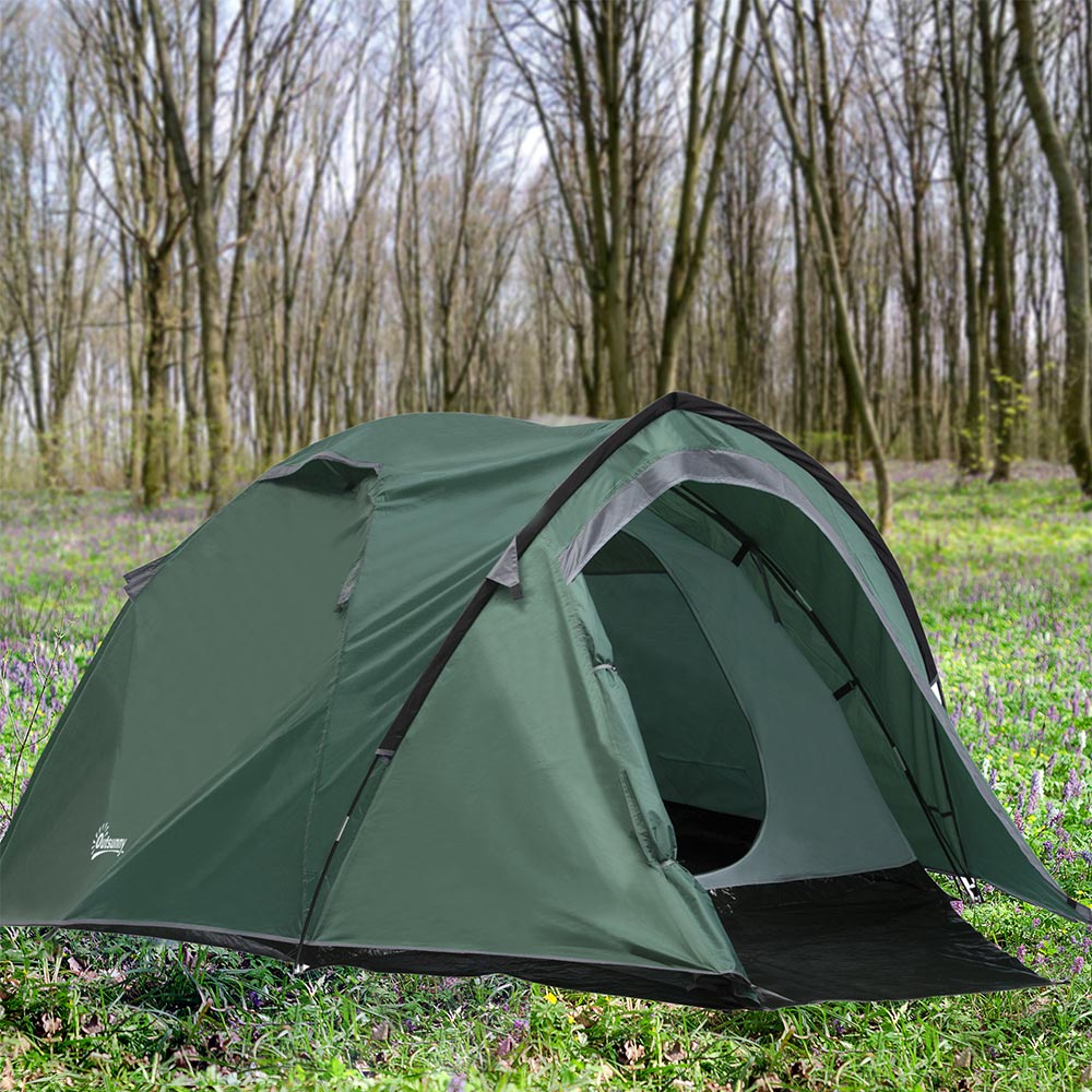 Outsunny's blackout tent with vestibule will make your camping experience much more enjoyable. This lightweight tent provides a large interior space and a durable waterproof exterior that will protect you from the rain. The separate spacious vestibule allows you to store gear or baggage. Independent of the sleeping area, the unique front vestibule provides extra shade for you to sit, change shoes, or even cook in the dome tents. A zipper door on the vestibule and a D-shape door on the inner tent is easy to access. The lamp hook of the two-person tent allows you to hang lights at night, and the four storage inner bags help you to organise mobile phones or other small objects. The lightweight folding design provides you with the convenience to travel and set up the camp anywhere. The carry bag facilitates transportation. Outsunny's dome shelter will let you enjoy the great outdoors all over again.