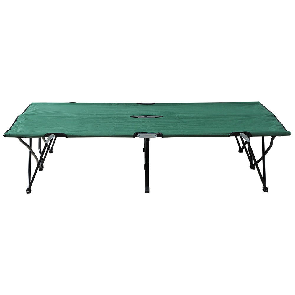 This Outsunny camping travel cot is a great addition for anyone who likes to go camping and see the outdoors. The folding system helps to make the unit compact and easy to carry. It is made from a metal frame with Oxford fabrics which can hold up to 136kg. The raised height and length of 193cm will fit most people for comfortable seating or sleeping. The cot comes ready to use and will be ideal for travelling. Made for two people to rest and sleep comfortably throughout the night, this folding camp bed supports up to 136kg. Providing more than 40cm height of the ground, this double camp bed lets air flow freely on all sides to keep you comfortable while you sleep. Made with 600D oxford fabric, this camping bed makes for a cot that can withstand wear and tear.