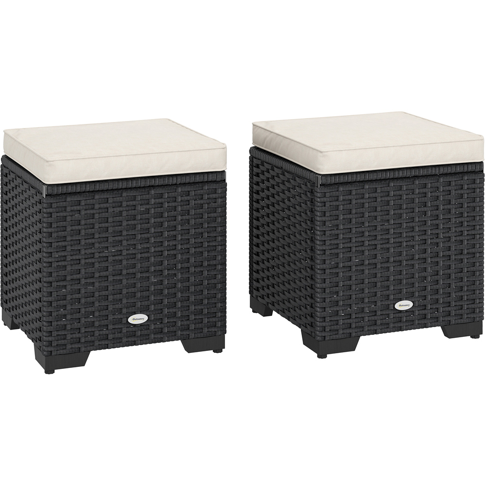 Discover the charm of Outsunny's rattan garden stool, blending style and functionality. Its lift-off lids reveal lots of storage for all your bits and bobs, from books to gardening tools. Enjoy upgraded comfort with thick, cushy seats that easily zip off for cleaning. This versatile piece serves wonderfully as a small footstool or extra seating, crafted to endure the elements with a robust steel frame.
