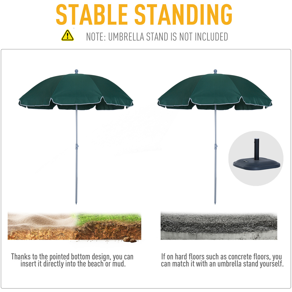 Create a cosy space outdoors with the Outsunny Dark Green Tilt Parasol. Relax outside on any day of the year with a protective beach parasol umbrella. The tilt mechanism allows you to quickly adjust the canopy for maximum shade and protection from the sun. Simply push and pull so you can easily open and close the sun umbrella for the garden, and the tilt mechanism allows angle adjustment. The pole of the sun shade umbrella can be divided into two sections, making it convenient for transportation and storage. The portable parasol has a sharp pole bottom design that is easy to insert into the beach or mud without the need to carry an additional umbrella seat. It's never too early to start planning your summertime oasis with this garden umbrella to make your patio and backyard more comfortable and inviting. Size: 2.2m. Looking for a way to keep your parasol secure and protected and enjoy some shade? Check out our selection of parasol bases, designed to keep your parasol in place while you relax and parasol cover to keep them protected.