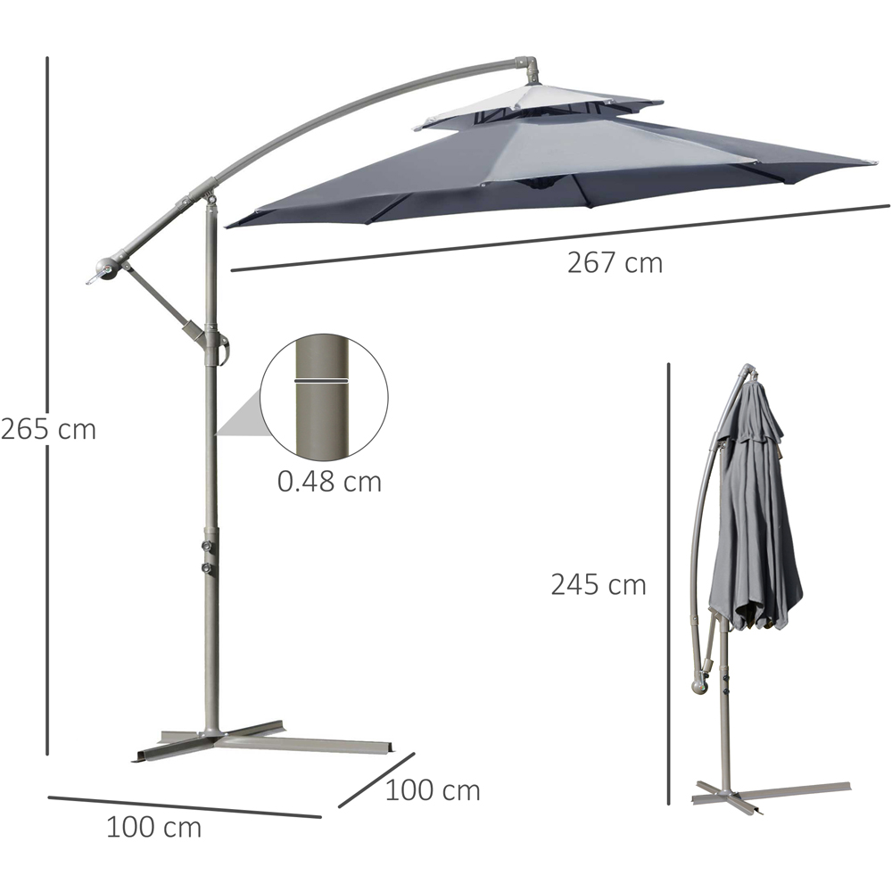 Outsunny Dark Grey Crank Handle Double Tier Cantilever Banana Parasol with Cross Base 2.7m