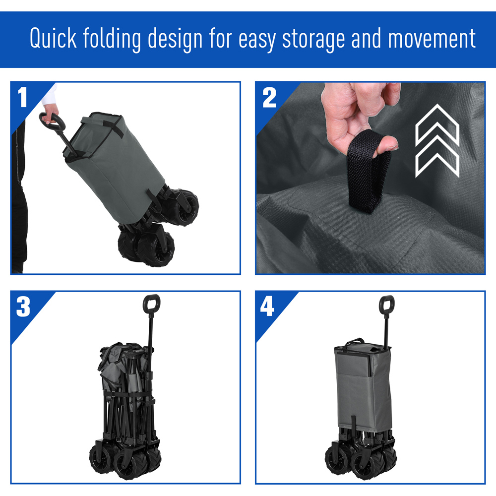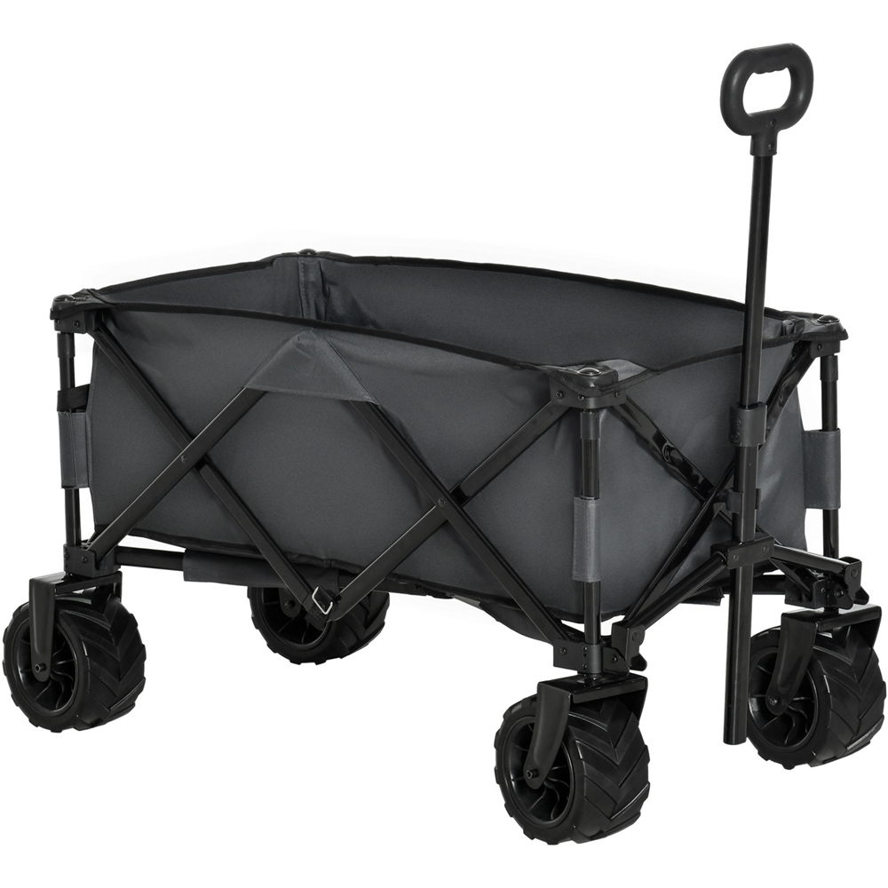 Moving items in multiple trips can be a tedious task for many, but with the Outsunny Dark Grey Pull Along Cart Folding Cargo Wagon Trolley, it has become easier to transport items in one go. This folding trolley cart comes with a weight capacity of up to 70kg, which makes it perfect for heavy tasks. The cart has a metal frame that provides a strong and supportive core. It features two regular wheels and two 360° rotating wheels that move smoothly over ground. This spacious cart is a must-have for outdoor trips as it can carry a lot of items, thus saving you time, effort and energy. The foldable frame makes it easy to store when not in use, and the telescopic handle helps in pulling the cart easily. The folding metal frame ensures a strong and reliable structure that stays in shape when you are on the go. The folding trolley is easy to store and fits into the boot of your car.