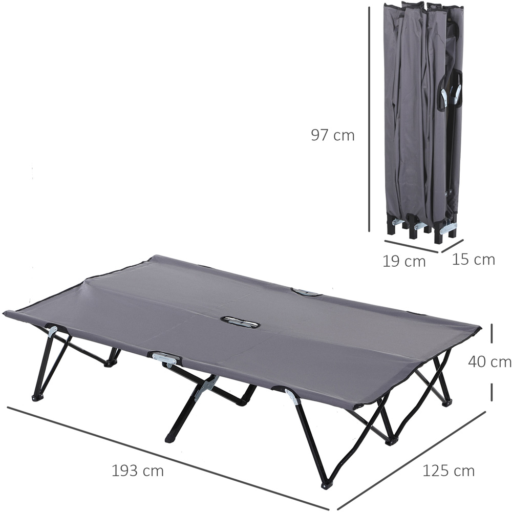 Rejuvenate after your camping adventure with the Outsunny Double Grey Foldable Camping Bed. It features a strong metal frame with sturdy legs for stability and support. It is crafted using Oxford fabric to provide ultimate relaxation and comfort. The double top layer ensures a cosy resting space with up to 136kg weight holding capacity. Its foldable design makes it convenient for transportation purposes and it also includes a carry bag for easy portability while travelling.