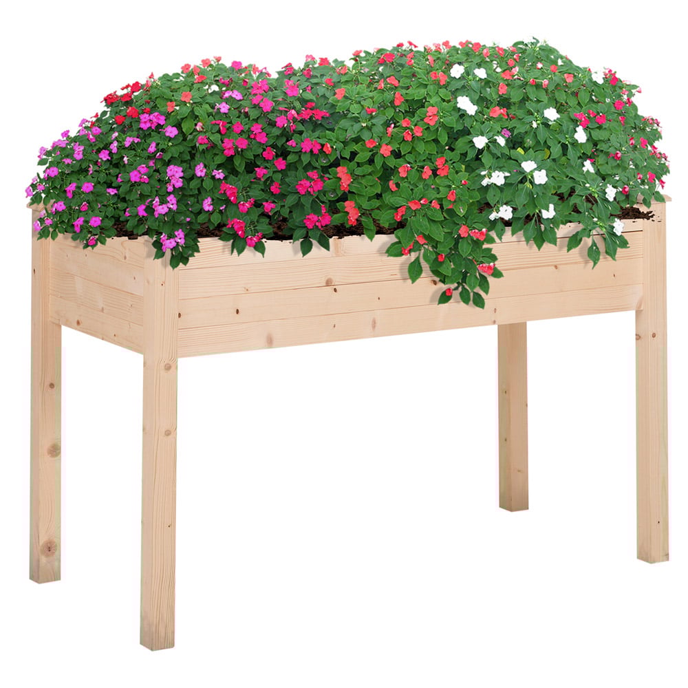 Give your beloved flowers and plants their own spot to grow and nurture with the Outsunny Raised Planter Box. Made using fir wood, this planter comes in a natural finish to blend in seamlessly with its surroundings and with an inner cloth bag for easy and quick cleaning. Features a raised design to prevent dirt from touching the planter and is finished with water-resistant paint for reliable all-year-round outdoor use. Apart from this, the wooden planter also has a rustic and unfinished look that you can customise to your own DIY design. Perfect for tomatoes, strawberries, herbs, plants and flowers.