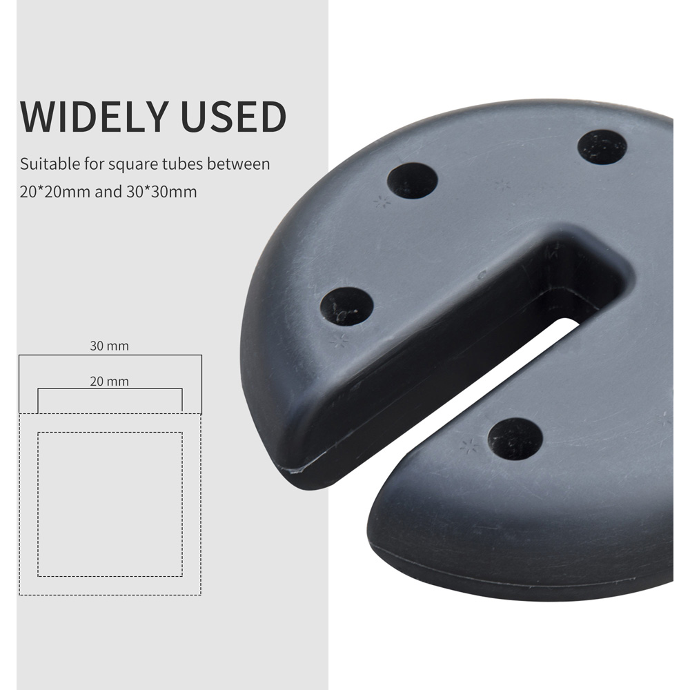 The set of four base weights from Outsunny is a great addition to any pop up gazebo or tent. These weights are designed to be used with square poles and each weight is 2.2kgs, providing a heavy and secure anchor for your tent. They are an efficient solution to prevent your tent from toppling or being blown away in strong winds. These disc-shaped weights are convenient to use and can be easily fixed to your tent. They are suitable for square tube folding tents with dimensions between 20 x 20mm and 30 x 30mm. Each weight is filled with cement, ensuring maximum stability. The total weight of the set is 8.8kg.