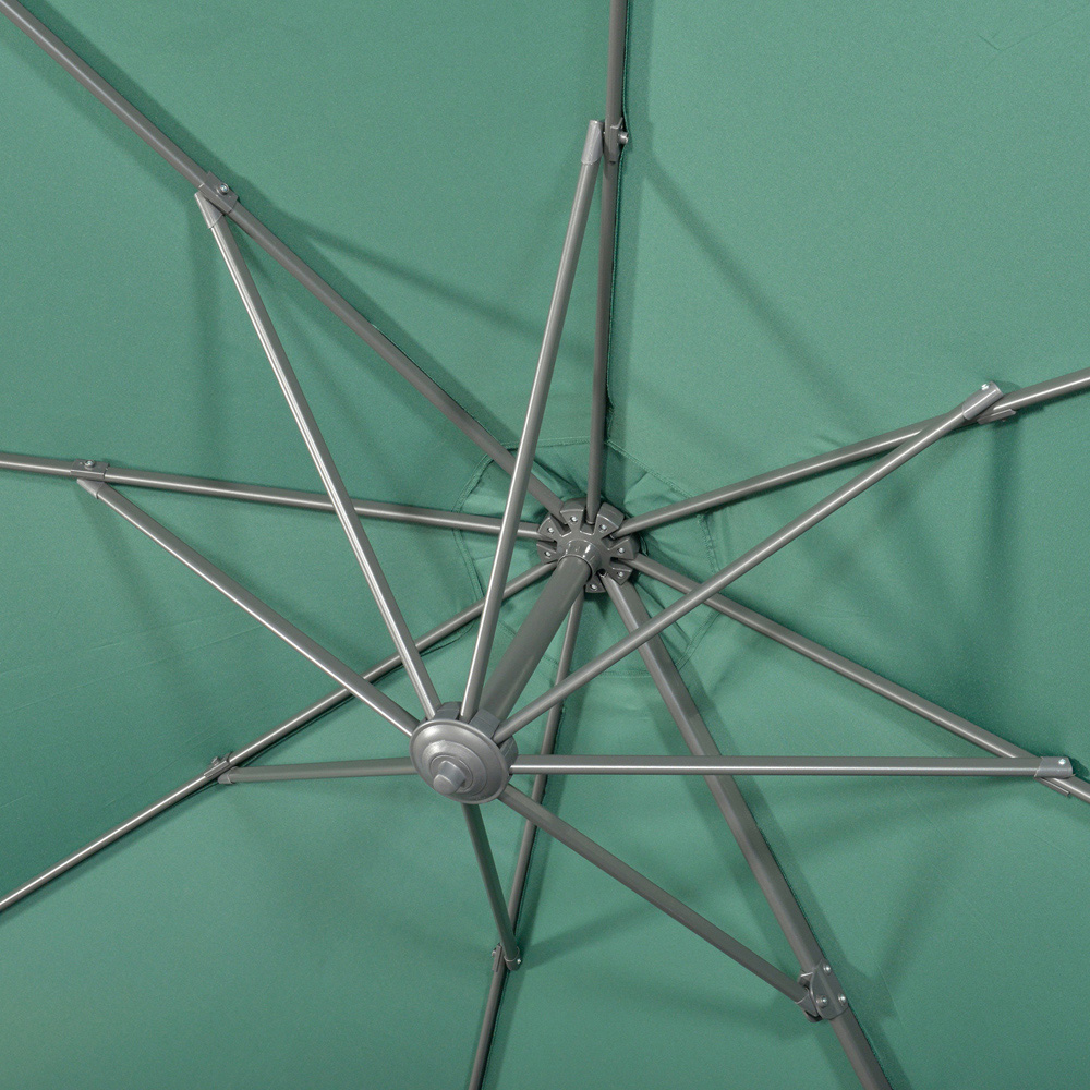 Outsunny Green Crank and Tilt Cantilever Parasol with Cross Base 3 x 3m