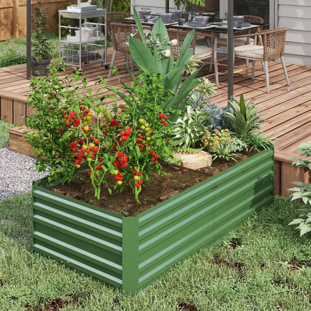 Outsunny Green Galvanised Steel Outdoor Raised Garden Bed with Reinforced Rods