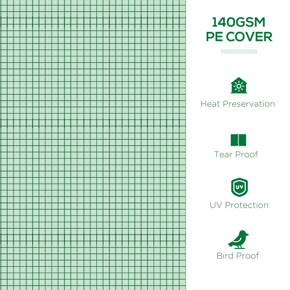 Make gardening easy with the Outsunny PE Mini Tunnel Greenhouse with 5 Mesh Windows. This garden polytunnel is a compact and convenient design - so whatever the space, you can grow your own vegetables and plants. Its steel frame ensures a strong core, fitted with a reinforced plastic cover to protect against the elements. Also, the three top windows and two side mesh windows allow airflow inside. Plus, the mesh helps deter unwanted animals from entering and ruining crops. This greenhouse is great for smaller outdoor spaces - particularly city flats, where there's little outdoor space to use. Size: 1.4 x 2.6 x 9.8ft.