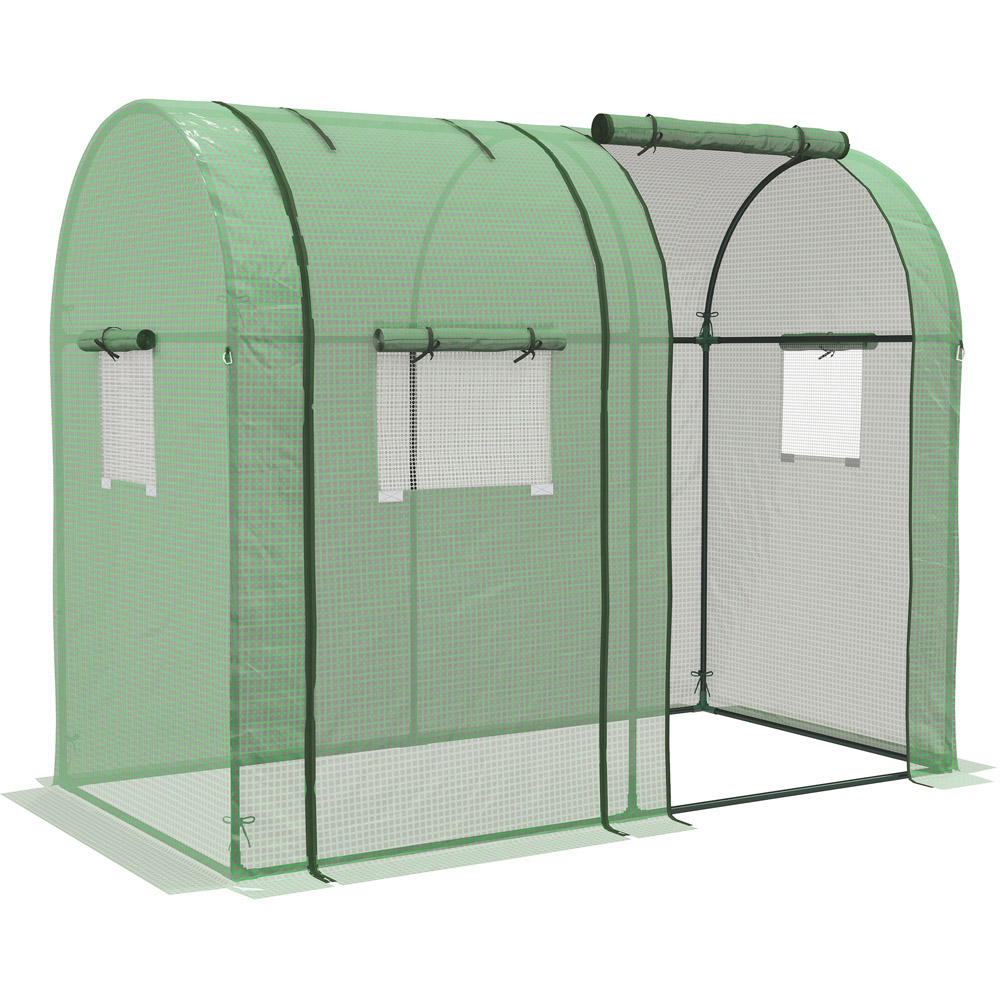 Keep your plants and flowers protected against freezing with the Outsunny Green PE Tomato Greenhouse. This greenhouse comes with two planting rooms and makes a spacious solution for gardeners of all levels. With enough vertical space, the greenhouse is designed for climbing plants like cucumbers and tomatoes to grow. Also, roll-up doors and mesh windows create a desirable temperature and humidity for plants to grow. Plus, it's UV-resistant to protect plants from UV scorching while allowing 85% of nourishing sunlight to pass through uninterrupted. At the same time, it's more anti-ageing and can serve longer. Size: 4.9 x 3 x 6ft.