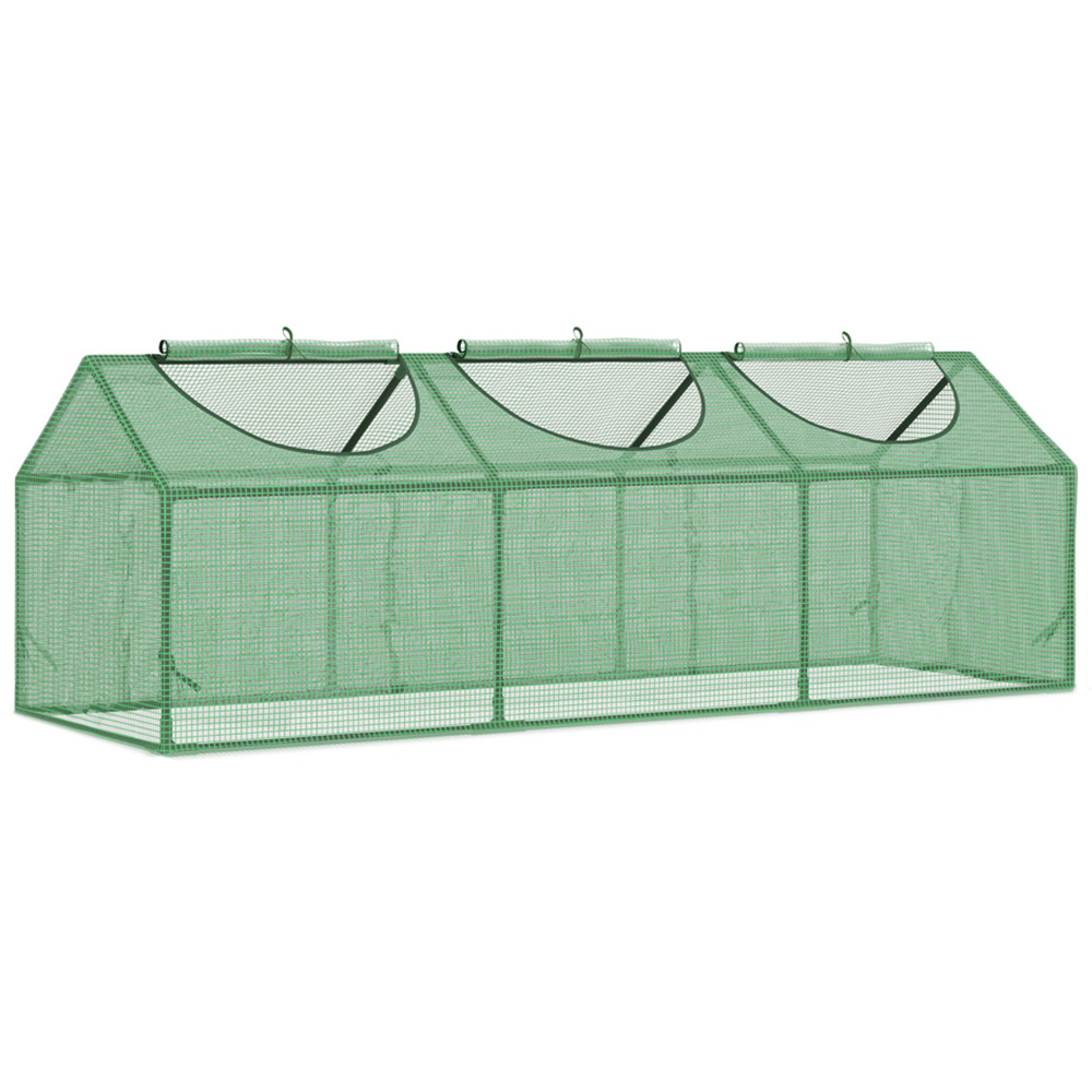 If you want to grow plants in a limited space, this Outsunny Green PE Plastic Mini Greenhouse with Windows is your ideal choice. Crafted with a steel frame, this greenhouse keeps in shape and is fitted with a PE plastic cover to protect the inside from light-moderate wind and rain. For sufficient ventilation, the three top windows allow air inside and roll up to conveniently stay in place. Also, it is finished with a 10cm extended edge to bury into the soil for extra staying power. Mini-sized, the greenhouse makes it easy to grow plants, vegetables, herbs and flowers almost anywhere. It is ideal for smaller flats and houses, with limited space, like balconies. Plus, the plastic cover is water and UV-resistant to protect plants from the weather whilst allowing sunlight inside, giving them lots of natural nutrients. Size: 2 x 2 x 6.2ft.