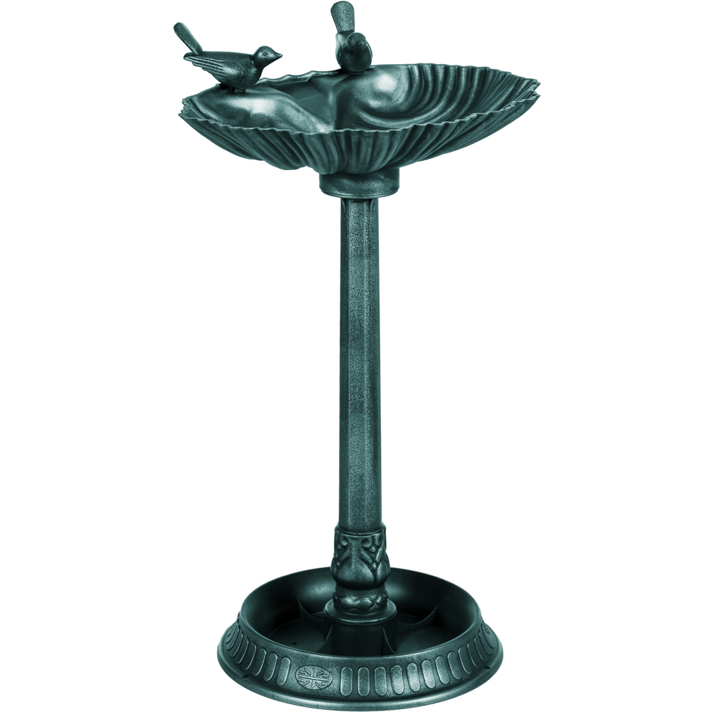 Invite the neighbourhood bird to your home. Offering a classic look with an easy-to-carry build, this plastic bird bath makes your outdoor space a bird watcher's favourite place. Two basins offer birds a place for food and water. Featuring a shell-shaped basin and two bird statues adorning the top, our hummingbird bird bath easily brings a touch of elegance to your garden with an outdoor-ready build that withstands water, weather and frost for year-round enjoyment with a metal-like antique look.