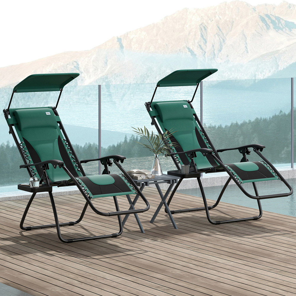 Outsunny Green Zero Gravity Folding Reclining Chair Set of 2
