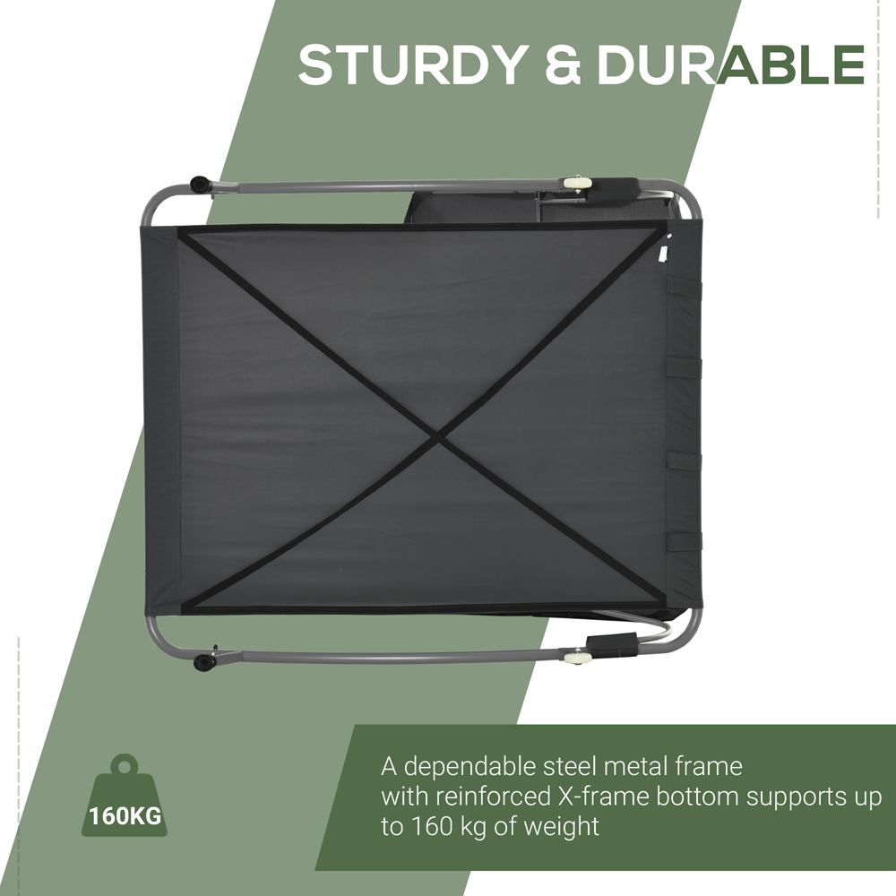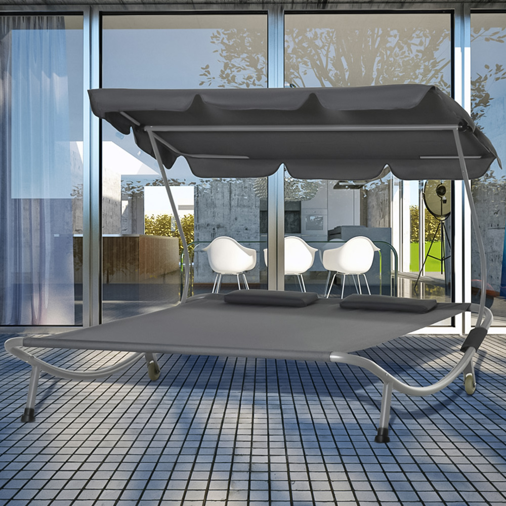 Uplift your outdoor space with this Grey Double Hammock with a Canopy from Outsunny. This weather-resistant double hammock bed features a modern design constructed from a durable metal frame and Oxford fabric polyester, offering the desired durability for long-term use. The double garden bed with two pillows will be a cosy spot in your outdoor space, and the X-shaped webbing at the bottom improves support. The detachable and adjustable canopy helps provide the correct shade direction every time. The two-wheel design offers flexible movement, and the bed replacement is ideal for enjoying your outdoor space. Protect your garden furniture with our durable and waterproof covers. Explore our wide range of heavy-duty Garden Furniture covers to find the perfect fit for your needs.