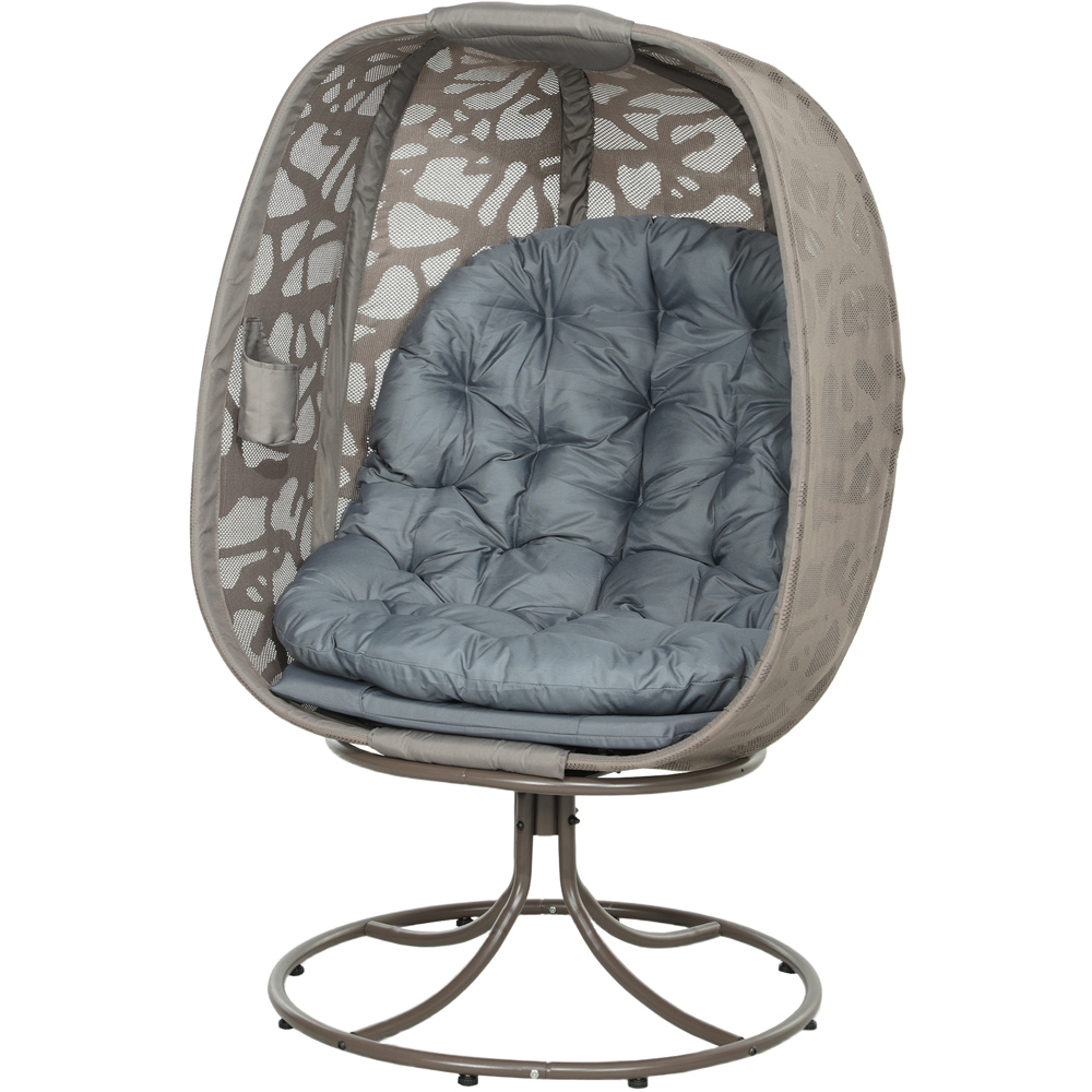 Relax in style with this Outsunny swivel egg chair, designed for great comfort. The soft cushions make lounging a joy, while the 360-degree swivel feature lets you effortlessly turn to chat with friends or enjoy the view. Great for your patio, garden, or living room, this garden egg chair offers both functionality and chic appeal, making it the good spot for relaxation. The egg shape and branch patterned mesh cover brings unique charming. Great for both indoor and outdoors, this grey egg chair enhances living room, garden, porch and patio with its chic versatility. This egg garden chair features a full swivel seat, allowing effortless 360-degree rotation for chatting, enjoying the view, or getting up with ease. Featuring 2 soft cushions, this outdoor egg chair offers unbeatable comfort, making it the great spot to relax in the sun or unwind during cosy evenings.