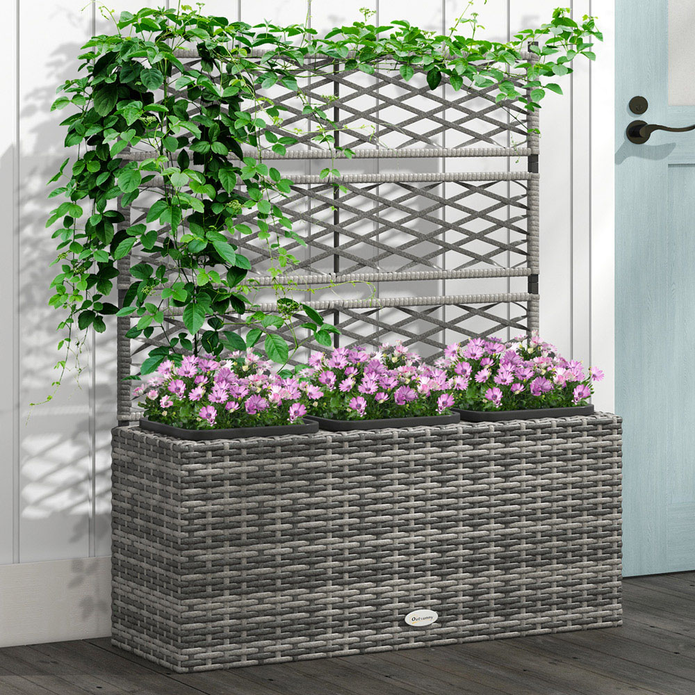 Outsunny Grey Garden PE Rattan Planter with Trellis 84 x 30 x 107cm