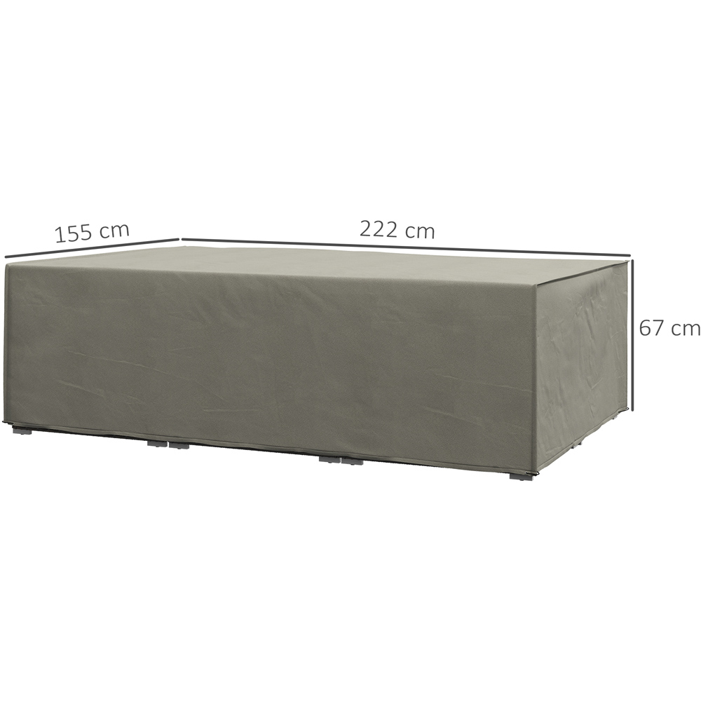Protect your outdoor furniture year-round with the Outsunny Grey Oxford Rectangular Rattan Furniture Cover 222 x 155 x 67cm. The all-weather outdoor furniture cover is designed to effortlessly fit over your entire patio set, making it easy to use. Made from strong and durable Oxford fabric with a waterproof 130g/㎡ PE coating, this rattan furniture cover provides a multi-layer defence to your outdoor furniture. Plus, it comes equipped with eyelets and fasten ropes, ensuring that your covers for garden furniture remain secure even during the windiest conditions. When the time comes to relax outdoors, simply slip off the cover to find your furniture in perfect condition, ready for use.