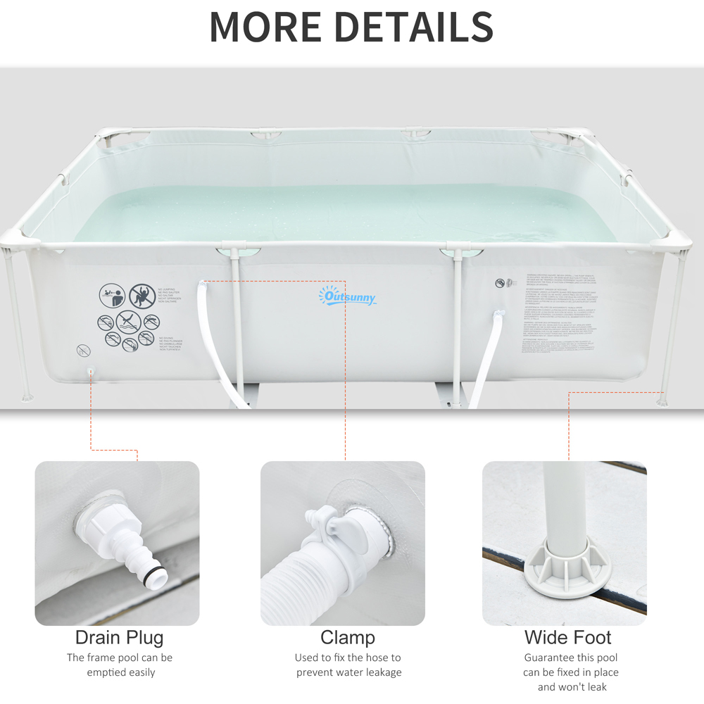 Dive into fun with the Outsunny Grey Rectangular Paddling Pool with Filter Pump. Owning a portable pool can enhance the fun in the sun for your family or friends, promote fitness, and be a social magnet. The included filter pump and filter cartridge help improve circulation and improve water clarity. The 1000D PVC material sidewalls are highly resistant to damage from abrasion, impact, and sunlight. This rectangle pool is the perfect way to beat the summer heat for some backyard fun. Supported by strong, durable steel frames which are paint spraying for rust resistance and beauty. Wide foot guarantees this above-ground pool can be fixed in place and won't leak. Why miss out on the fun this summer, when you could be the centre of it all? Size: 292 x 190 x 75cm.
