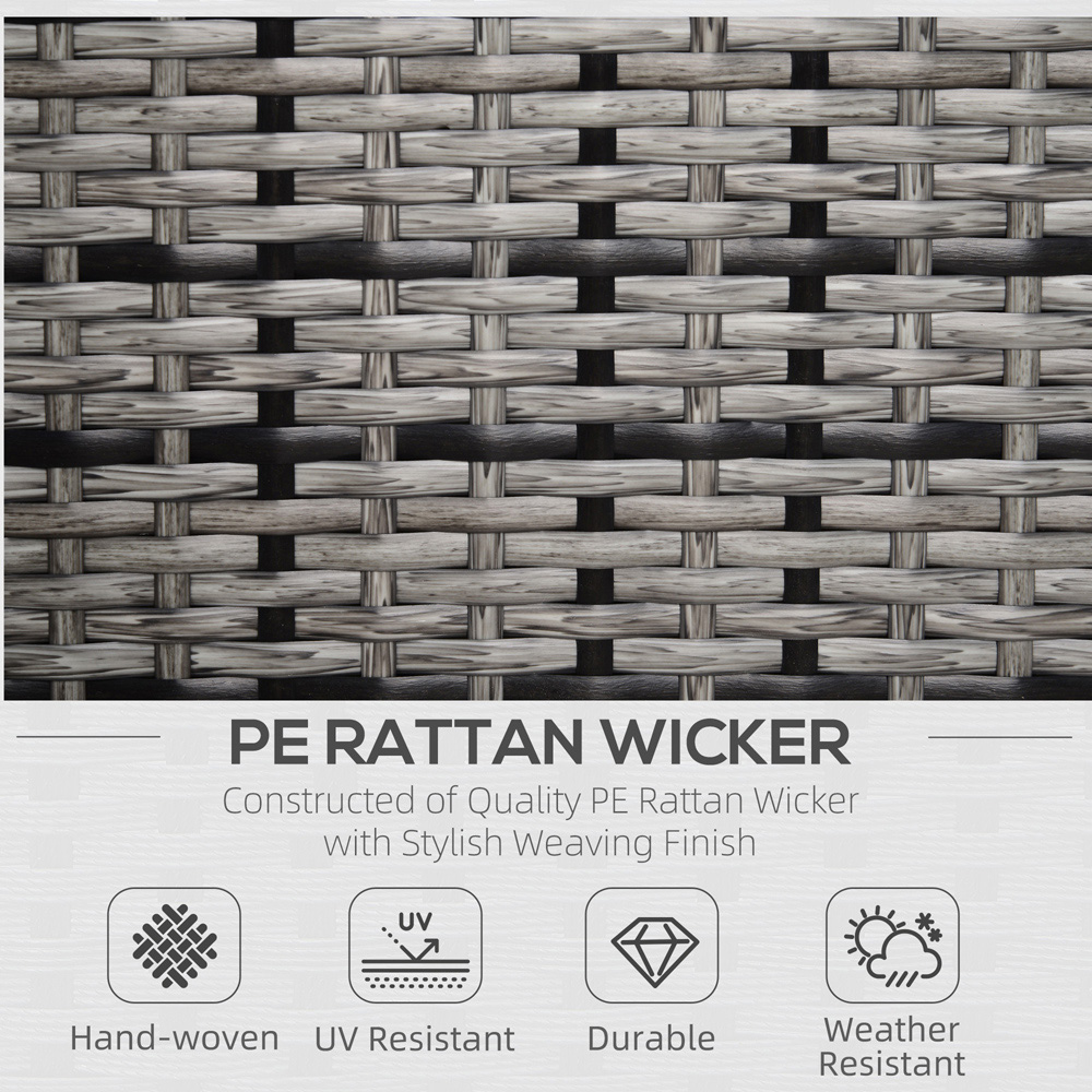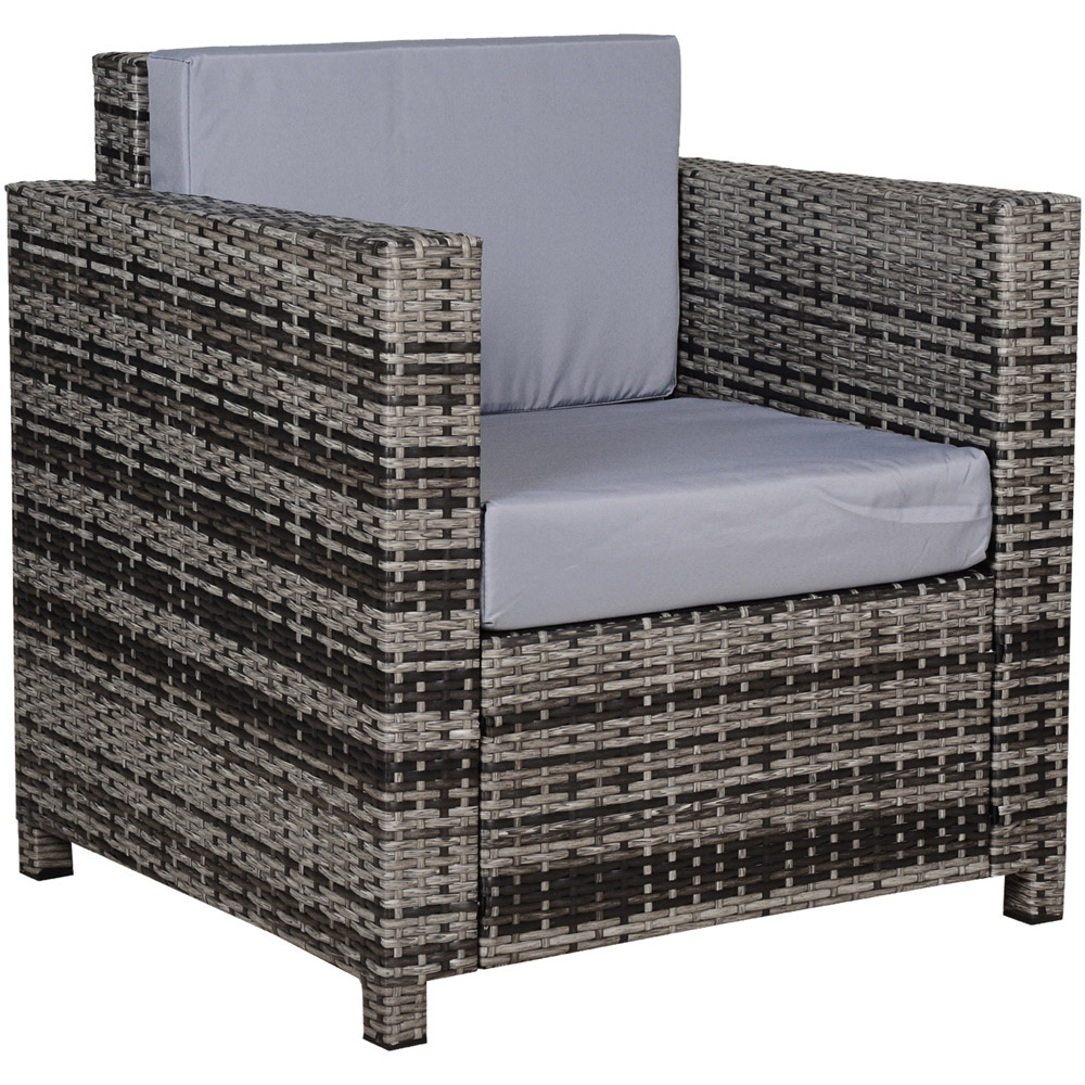Add an elegant touch to your living space with this comfy Single Sofa Armchair from Outsunny. This grey-coloured chair is made of a steel frame with a powder-coated process to ensure a strong and stable base. It is wrapped in rattan for easy cleaning and is a mainstay in your garden furniture. The chair comes with 10cm thick padded and plush fire-resistance cushions, which are water-resistant and have washable covers complemented by a high back and armrests for plenty of support. This outdoor rattan armchair is perfect for relaxing and enjoying the outdoor life in your garden, terrace, or poolside. Dimensions of the chair are - H80 x W70 x L75cm. Protect your garden furniture with our durable and waterproof covers. Explore our wide range of heavy-duty Garden Furniture covers to find the perfect fit for your needs.