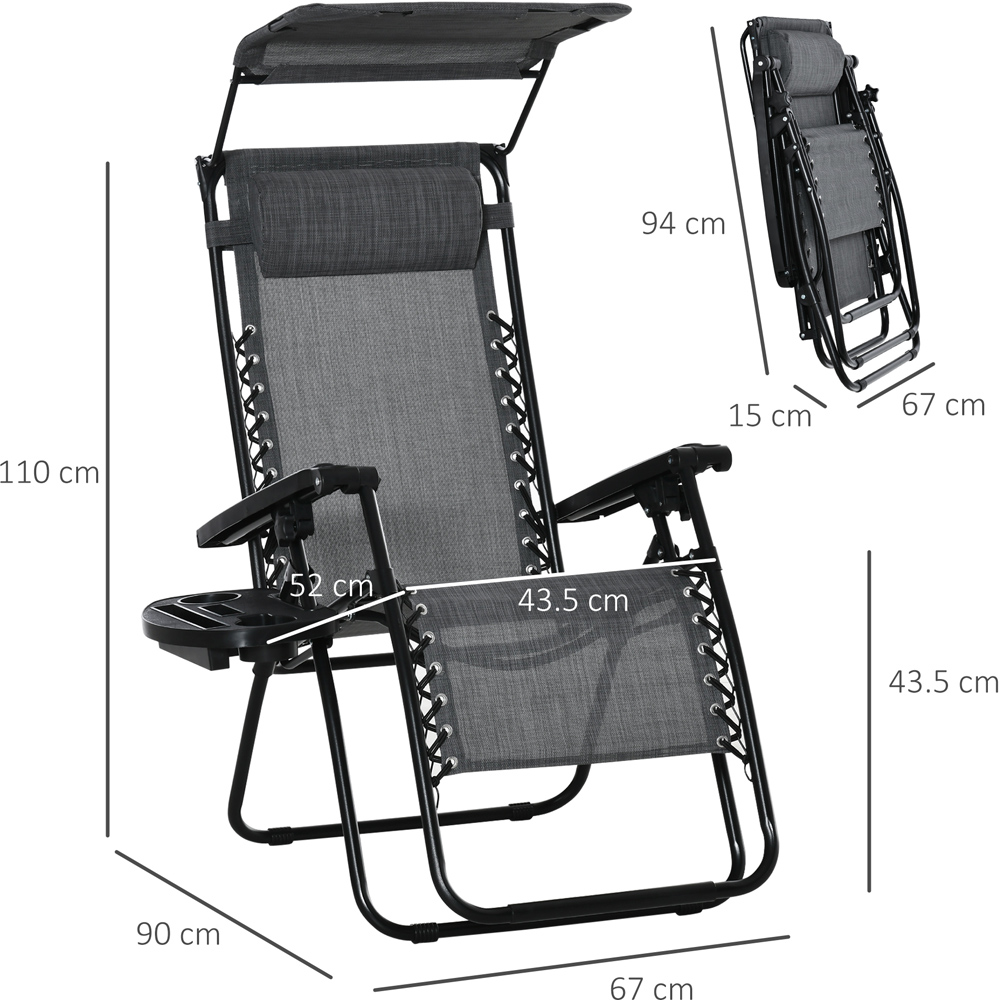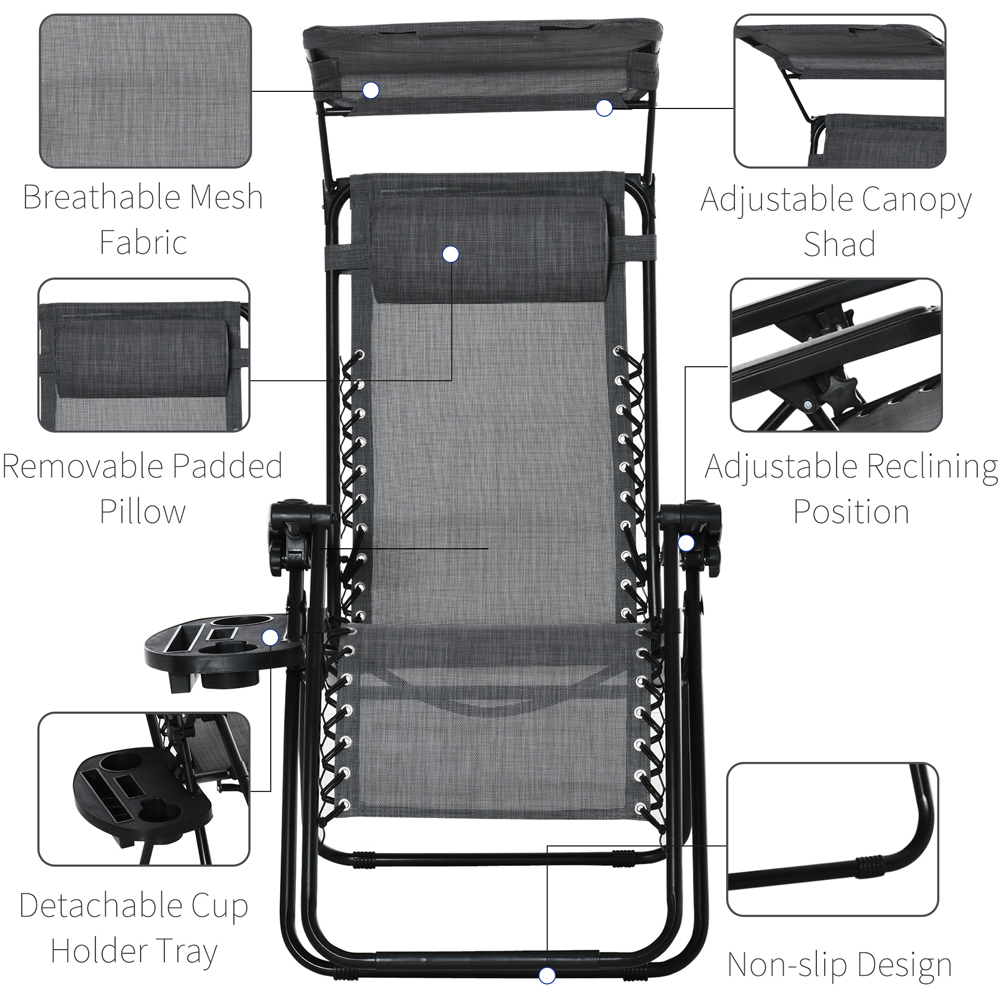 Outsunny Grey Zero Gravity Foldable Garden Recliner Chair with Canopy