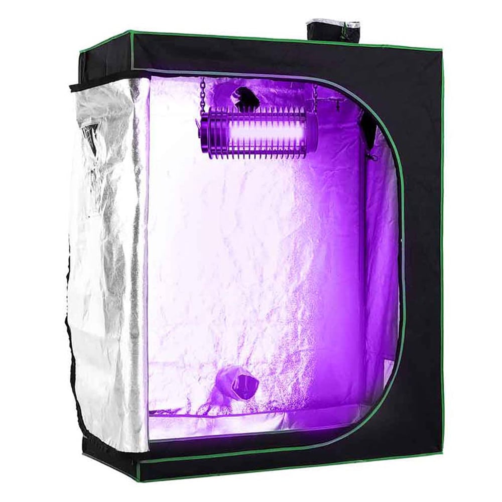 Outsunny Grow Tent is a plant growing tent kit. The Grow tent kit is made from high-density 600D Oxford fabric with an interior layer of highly reflective lining for maximized light and temperature control. It comes with heavy-duty zippers and double stitching seams for protection against light leaks. Size: 120 x 60 x 150cm.