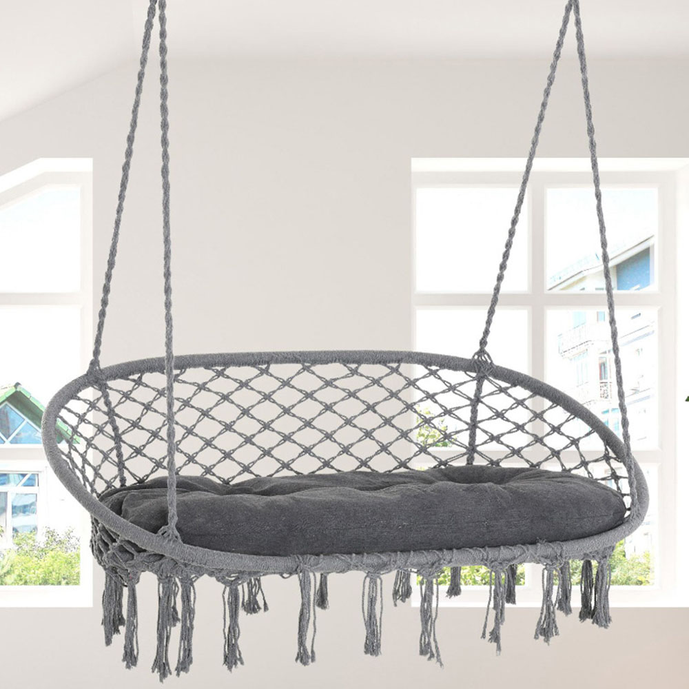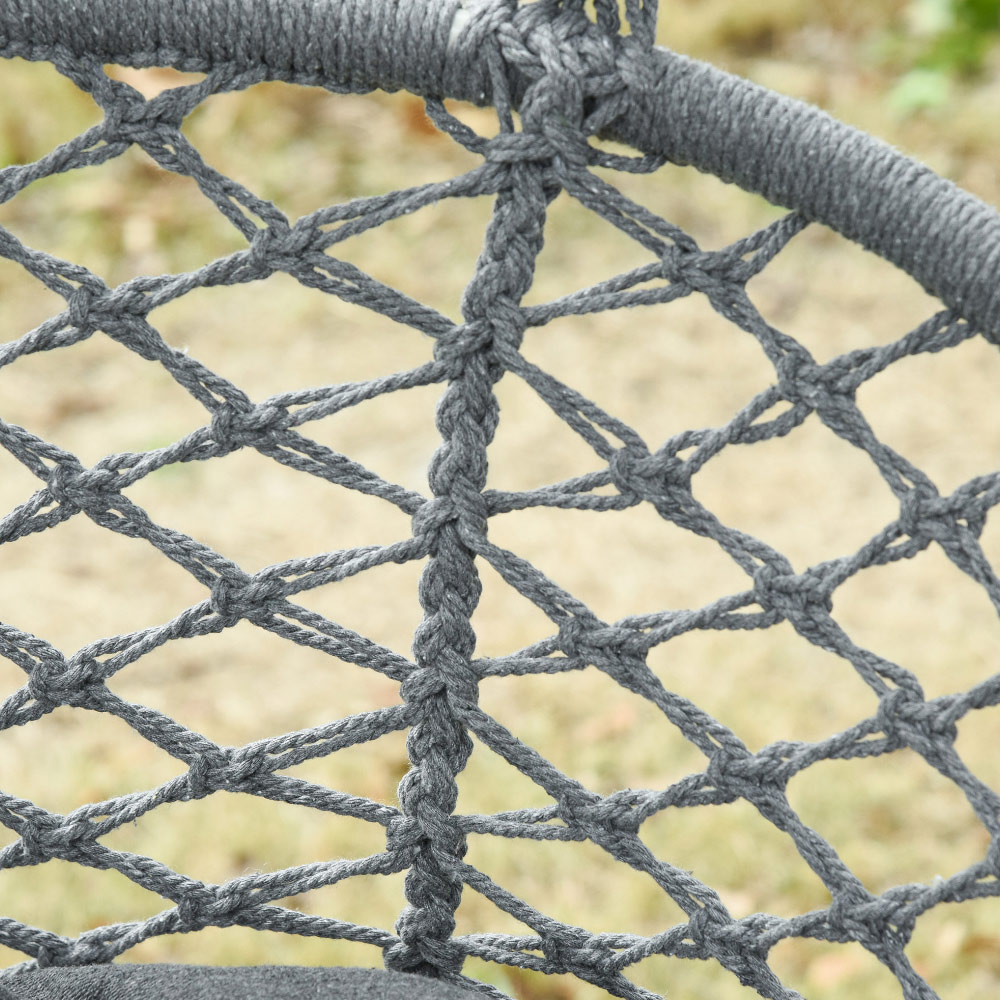 • Metal frame and four long hanging ropes for strong support