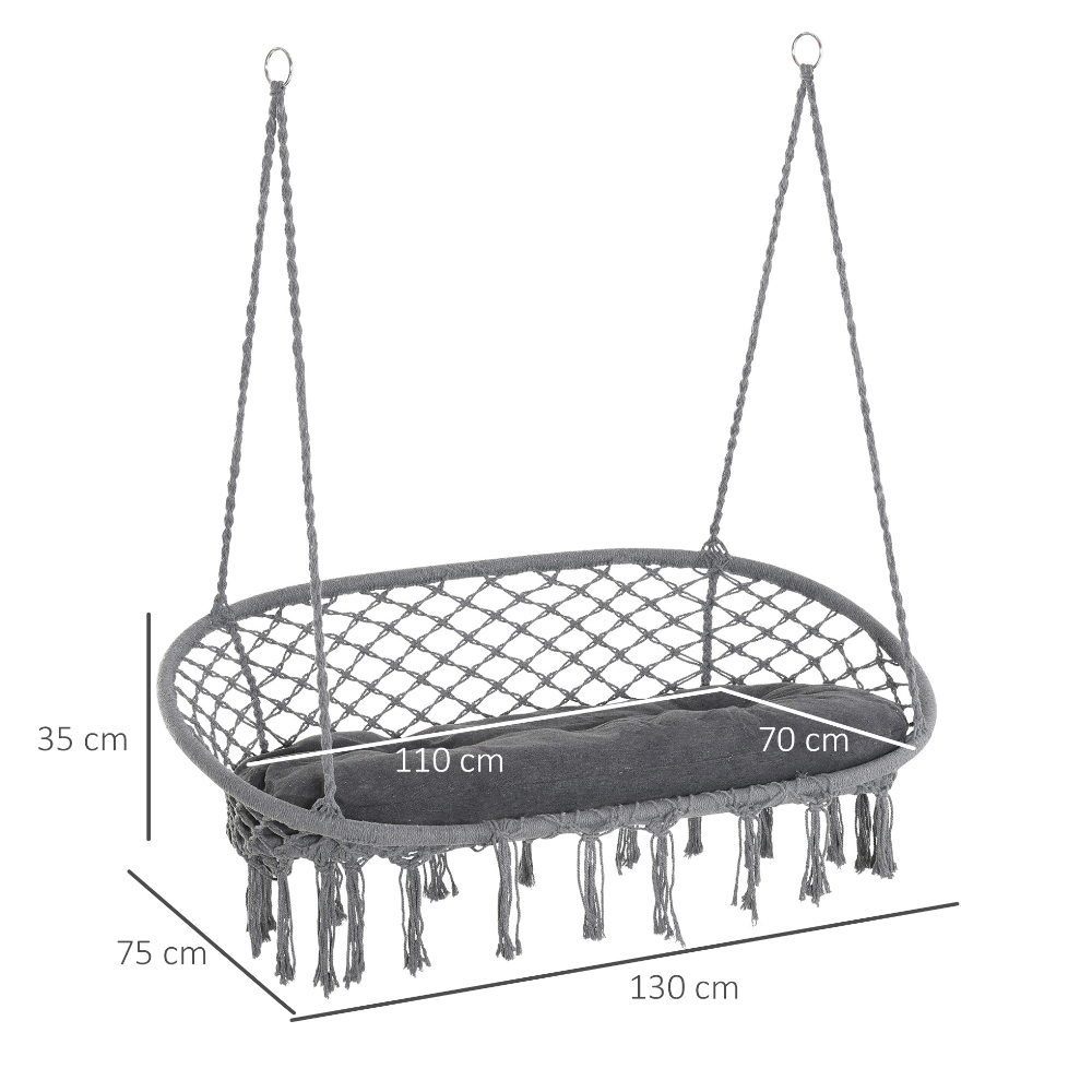 Relax and enjoy your outdoor space on a lazy afternoon with Outsunny Hanging Chair Swing Hammock. The boho style is pretty and elegant, showcasing fringe tassels wrapped in rope. It features the metal frame of the hanging seat for strong support and the curved back and armrests for added support. The garden swing hammock comes with a spacious seat to keep you comfortable. Protect your garden furniture with our durable and waterproof covers. Explore our wide range of heavy-duty Garden Furniture covers to find the perfect fit for your needs.