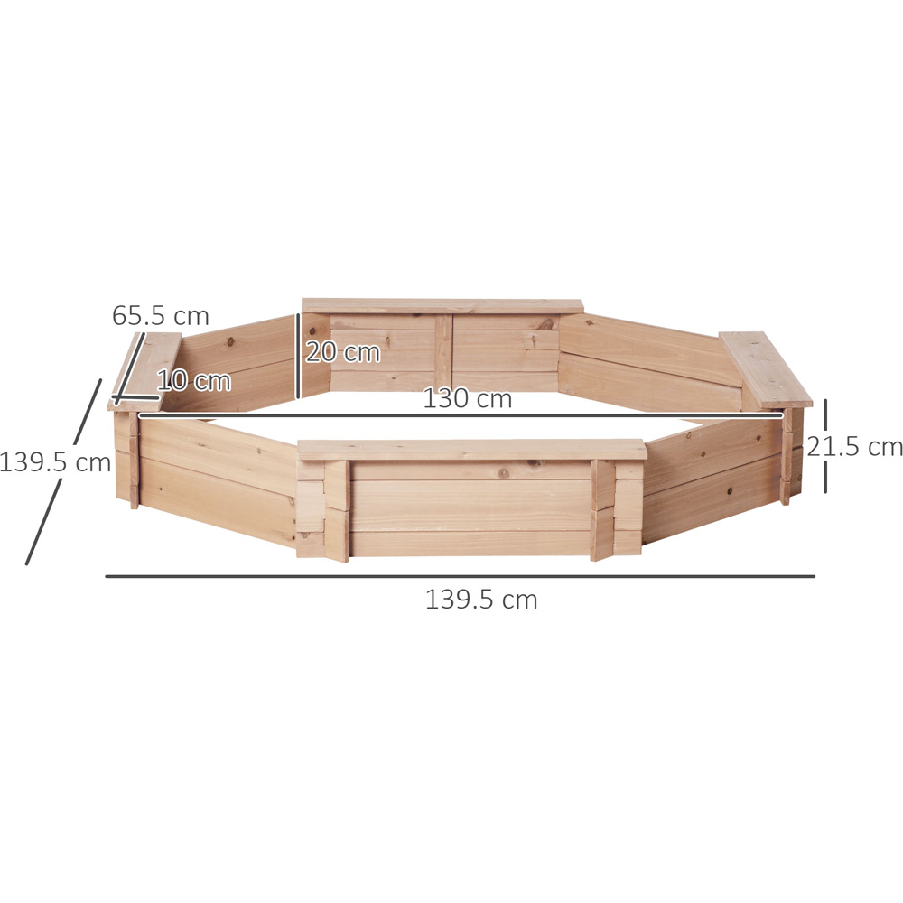 Create your own beach with this Outsunny Kids Wooden Sandbox with Cover. Featuring a bottomless design and a removable liner, the sand won't get everywhere and it's easy to clean up making it ideal for gardens. Great for playdates, it's spacious and can fit two children - they'll play, dig and make sandcastles together in a safe environment. Ideal for outdoors, this sandbox can remain outside, just place the polyester cover over it when not in use. This will keep the sand pit protected from different weather conditions in a hassle-free way to have outdoor fun. Solid and durable, the sandbox is built to last and has a smooth surface to lower the risks of cuts or injuries.