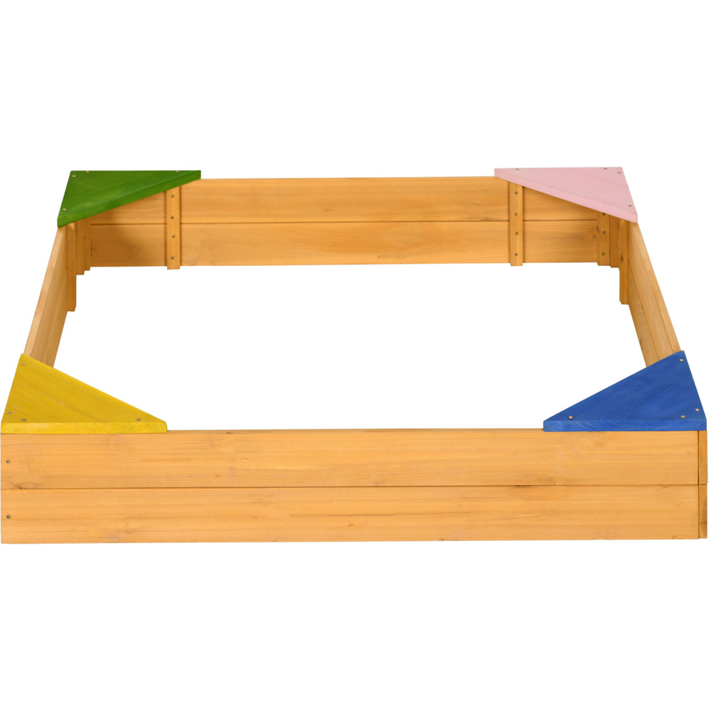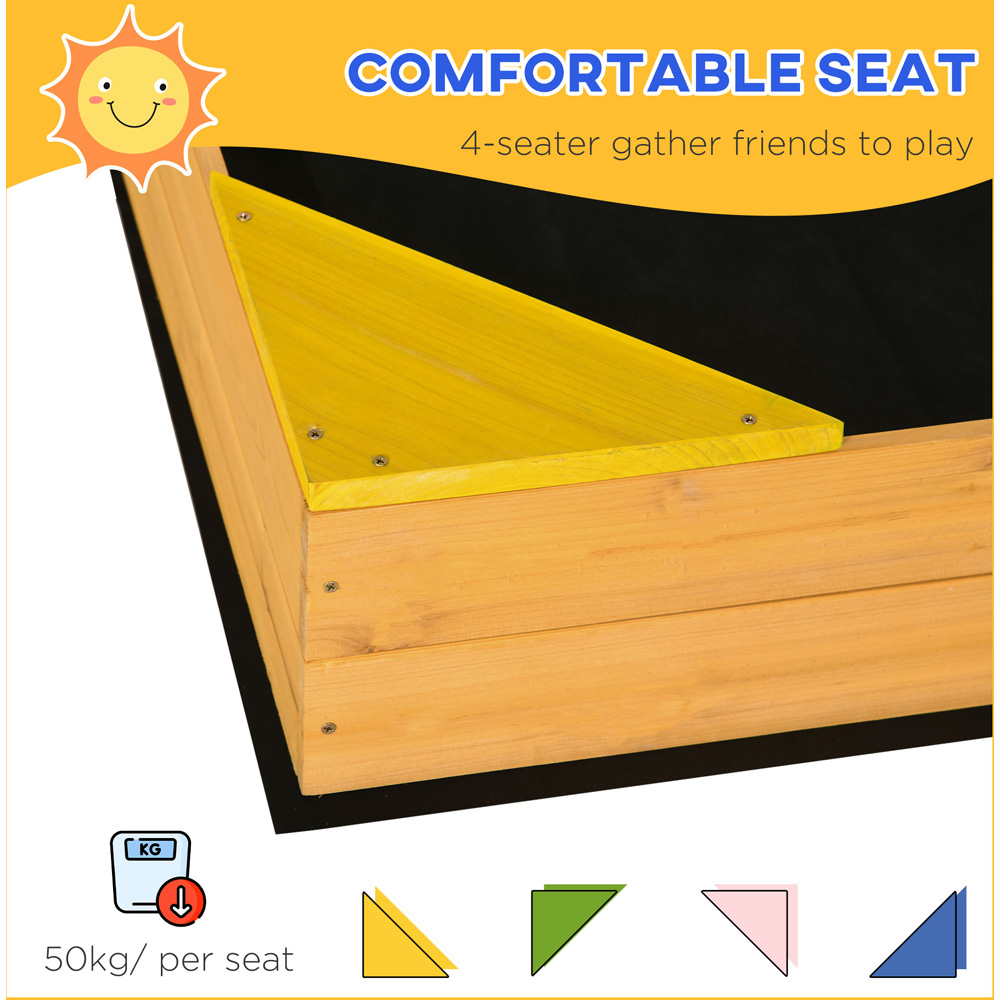 Create your very own mini beach with this Outsunny Kids Wooden Sandbox with Seats. This sandbox has four colourful seats on each corner so children can have fun with friends - perfect for parties and playdates. Made using fir wood, it has a specially treated surface that makes this durable piece suitable for outdoors. Featuring a bottomless design and removable fabric, it ensures sand doesn't get everywhere, keeping your space clean.