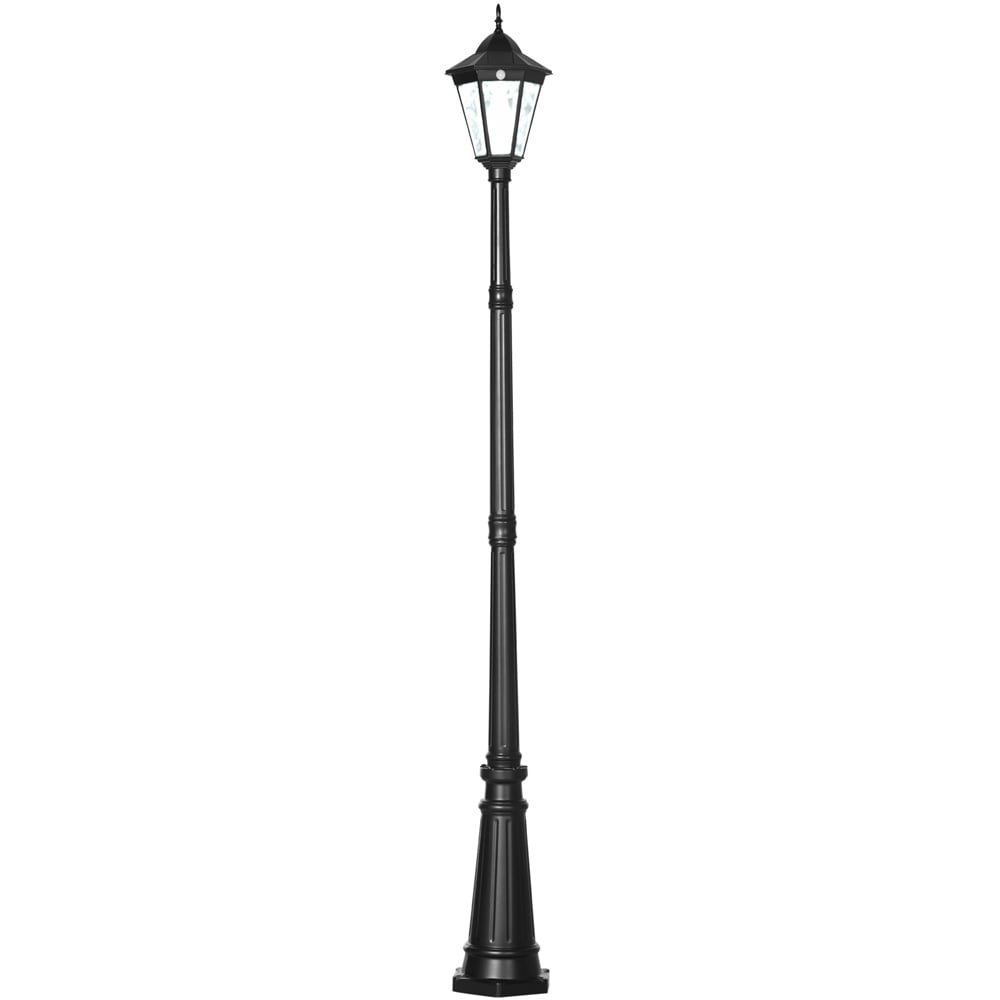 Go for the perfect blend of antique style and modern technology with the Outsunny LED Solar Lamp Post Light with PIR Motion Sensor. This lamp post charges in just six to eight hours of sunlight and provides four hours of bright LED light, creating a safe and well-lit atmosphere at night. The best part? It doesn't consume any electricity, saving you money. Made from sturdy aluminium and rated IP44 for outdoor use, this lamp post is built to last. Plus, it comes with an automatic sensor that turns the light on at dusk and off at dawn, making it incredibly easy to operate. Illuminate your garden with this reliable and eco-friendly solar lamp post.