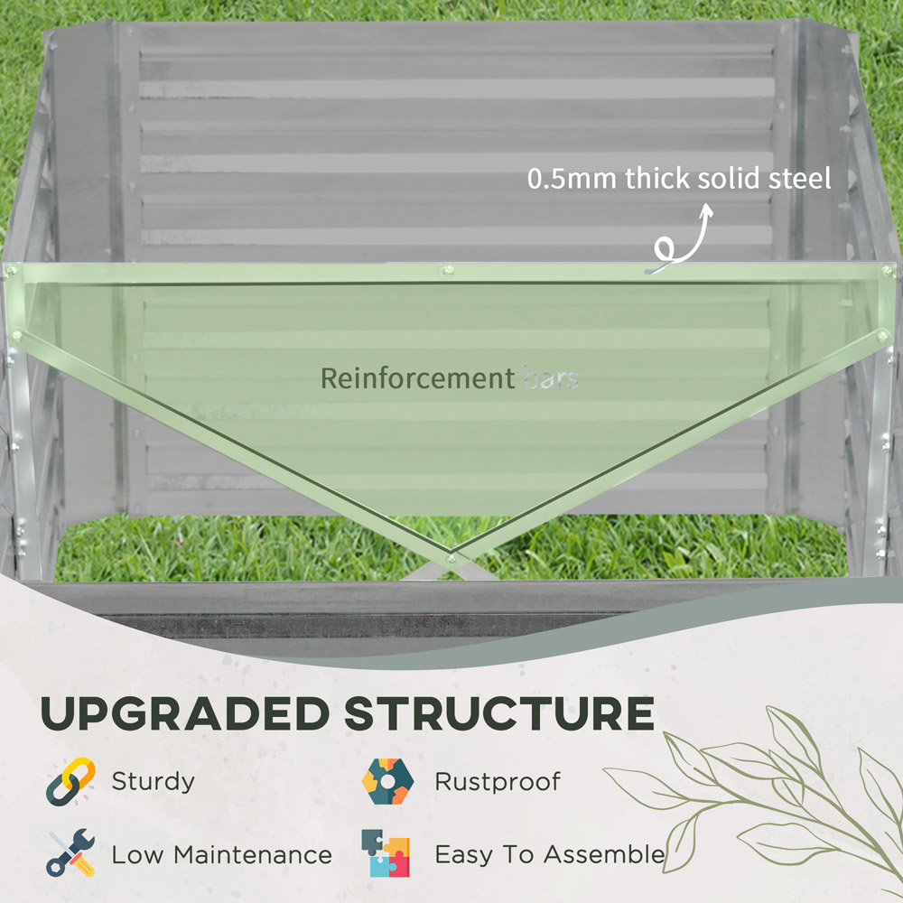 Outsunny Light Grey Galvanised Steel Outdoor Raised Bed with Reinforced Rods