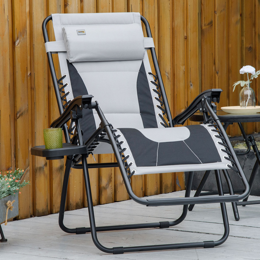 Let the day's stress drift away with this Outsunny Light Grey Zero Gravity Folding Recliner Chair. The patio recliner features a curved design with a padded head to keep you comfortable and relaxed. The foldable design makes it easy to carry and store. Features a handy cup holder tray to place drinks, magazines and more. The smooth recline function locks in any position and the added headrest and contoured armrest provide extra support and comfort. Suitable for the patio, campsite and outdoor areas. Protect your garden furniture with our durable and waterproof covers. Explore our wide range of heavy-duty Garden Furniture covers to find the perfect fit for your needs.