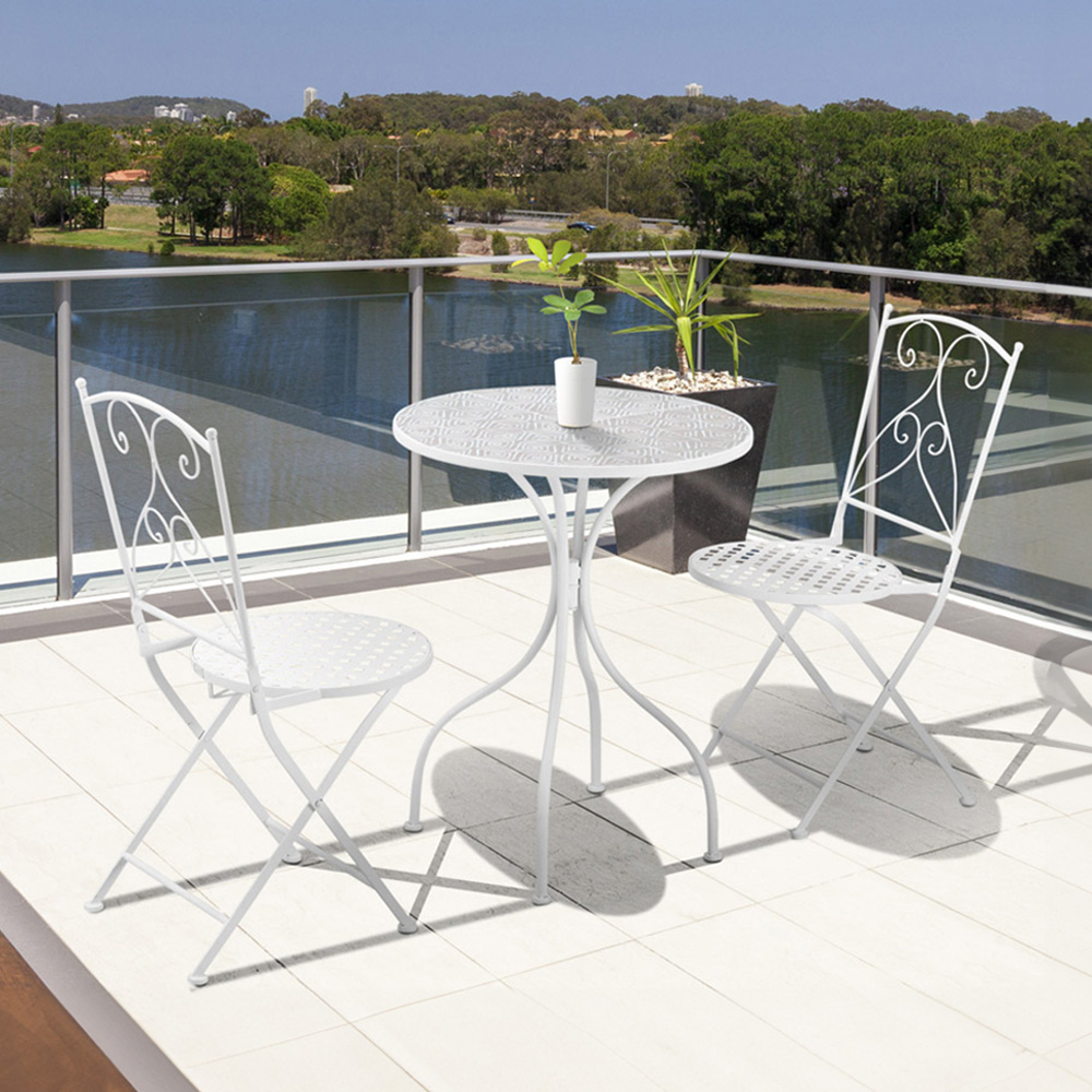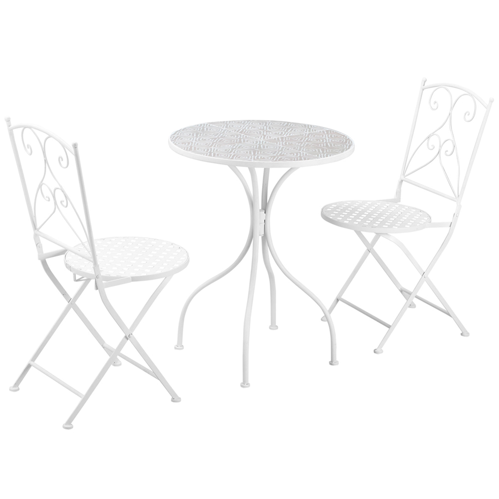 Outsunny 3 Piece Garden Folding Bistro Set Metal White